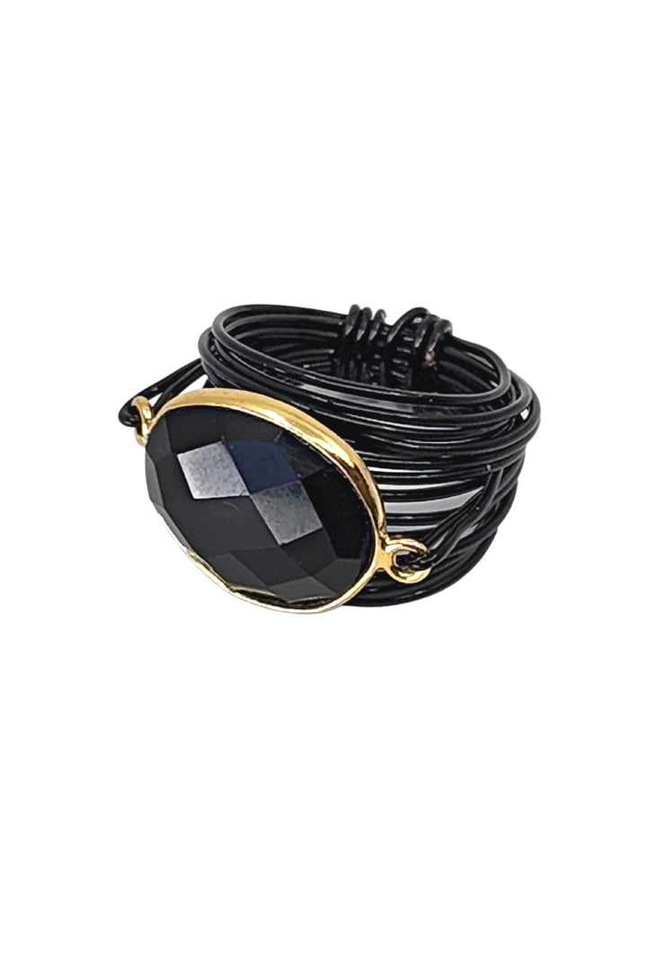 The Torrey Ring in Black Onyx with Black Wrap by A Blonde and Her Bag is an elegant piece that showcases a 14k gold bezel set black onyx gemstone. Its unique design is perfect for those seeking a sophisticated, minimalist look.