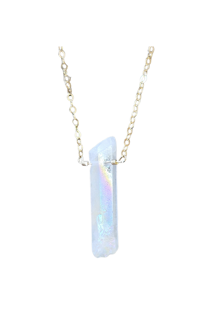 Single Raw Rainbow Quartz Crystal Pendant Necklace in Gold