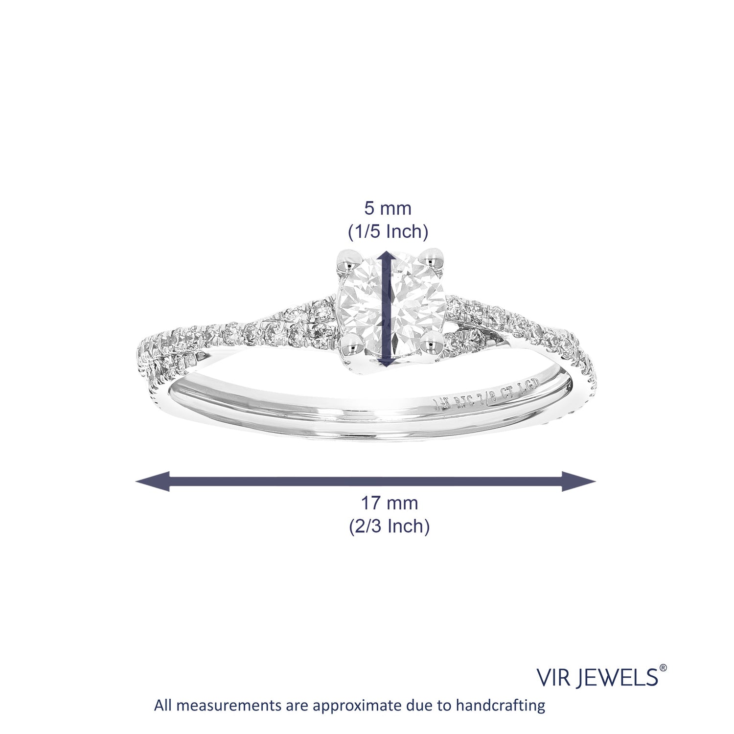 The 7/8 cttw Round Lab Grown Diamond Engagement Ring by Vir Jewels is crafted in 14K white gold, with 79 diamonds delicately set in a prong setting. The ring’s width is 1/5 inch, making it a bold yet elegant choice for an engagement. The lab grown diamonds offer the same brilliance and durability as natural diamonds, while being an eco-conscious option. This timeless design beautifully blends the classic appeal of diamonds with the modern sophistication of white gold. Perfect for celebrating your special day, this ring promises to shine bright for years to come.