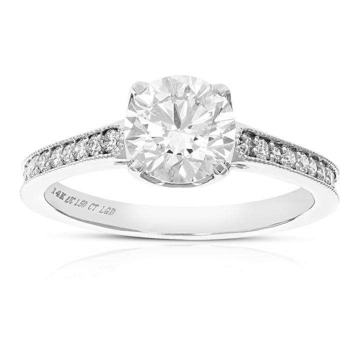 1.50 cttw Lab Grown Diamond Engagement Ring for Women in 14K White Gold Round Prong