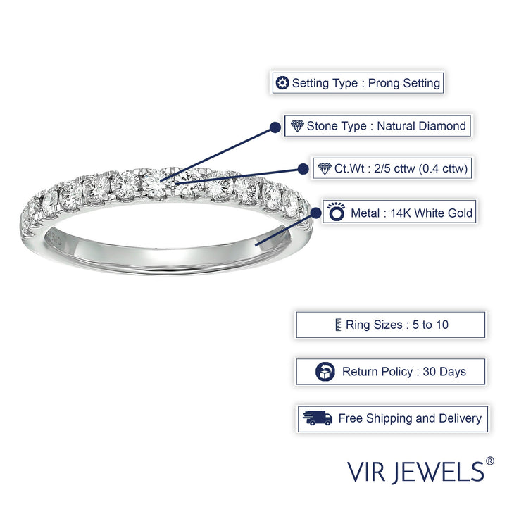 1/2 cttw Diamond Wedding Band for Women, Certified SI2-I1 Diamond Wedding Band in 14K White Gold 13 Stones