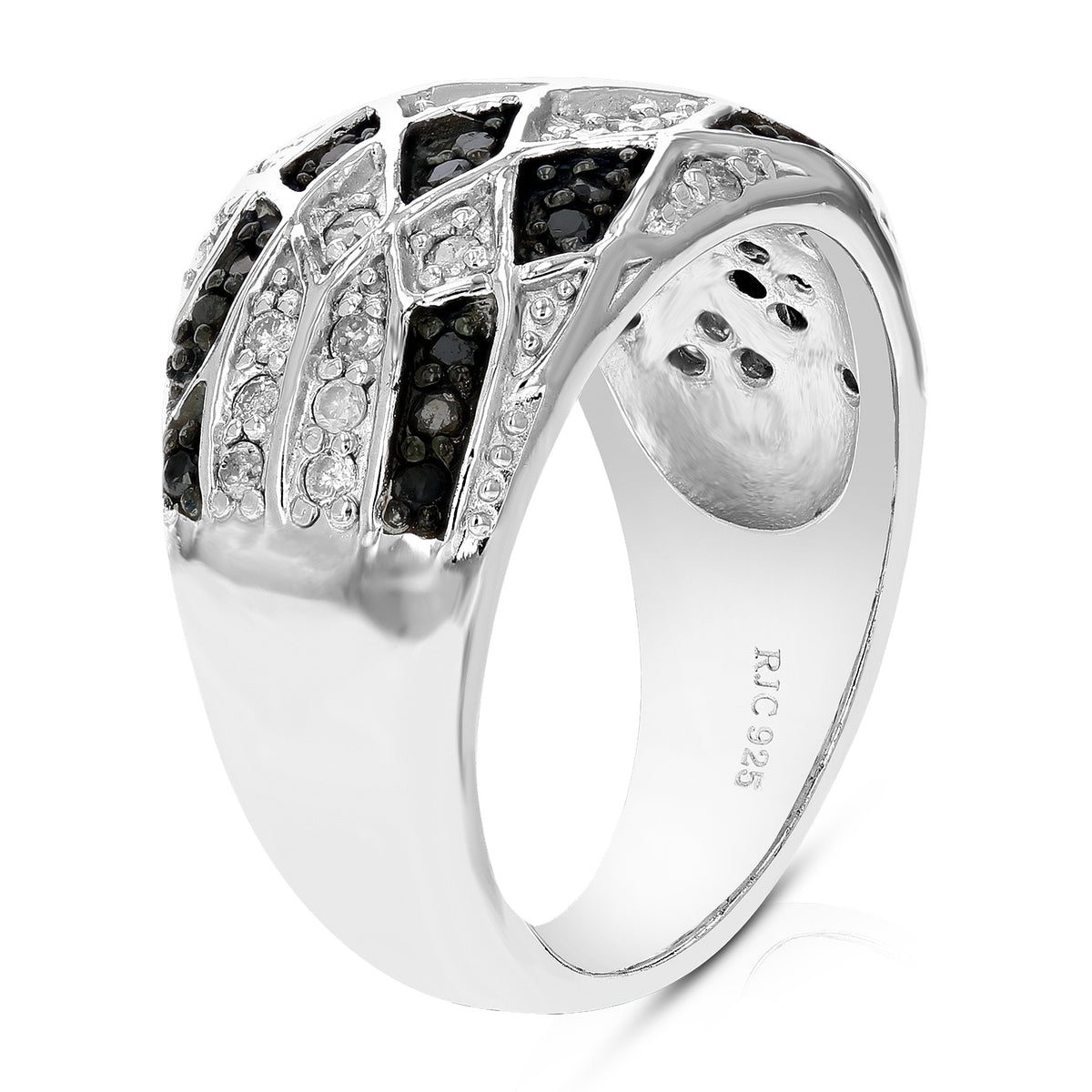 Crafted in 925 sterling silver with 0.70ct black diamonds. Features round-cut diamonds with I-J color and I1-I2 clarity.