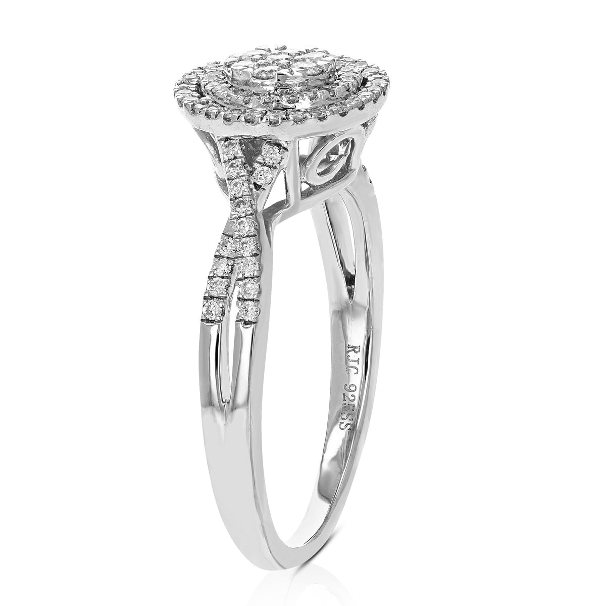 .925 sterling silver, 87 round lab-grown diamonds, 2/5 cttw, H-I color, SI1-SI2 clarity, prong setting, 10 mm (2/5 inch) width.