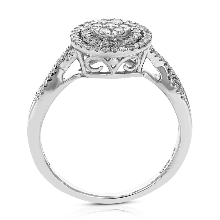 This 2/5 cttw Diamond Engagement Ring by Vir Jewels features a round lab-grown diamond set in .925 sterling silver. With 87 diamonds mounted in a prong setting, this piece showcases the perfect balance of elegance and durability. The lab-grown diamonds offer the same properties as natural diamonds, providing a sustainable yet luxurious option for a special occasion. The sterling silver metal enhances the brilliance of the diamonds, making it a timeless choice for engagement. The ring’s 10 mm width adds a bold touch, elevating its chic and sophisticated design.