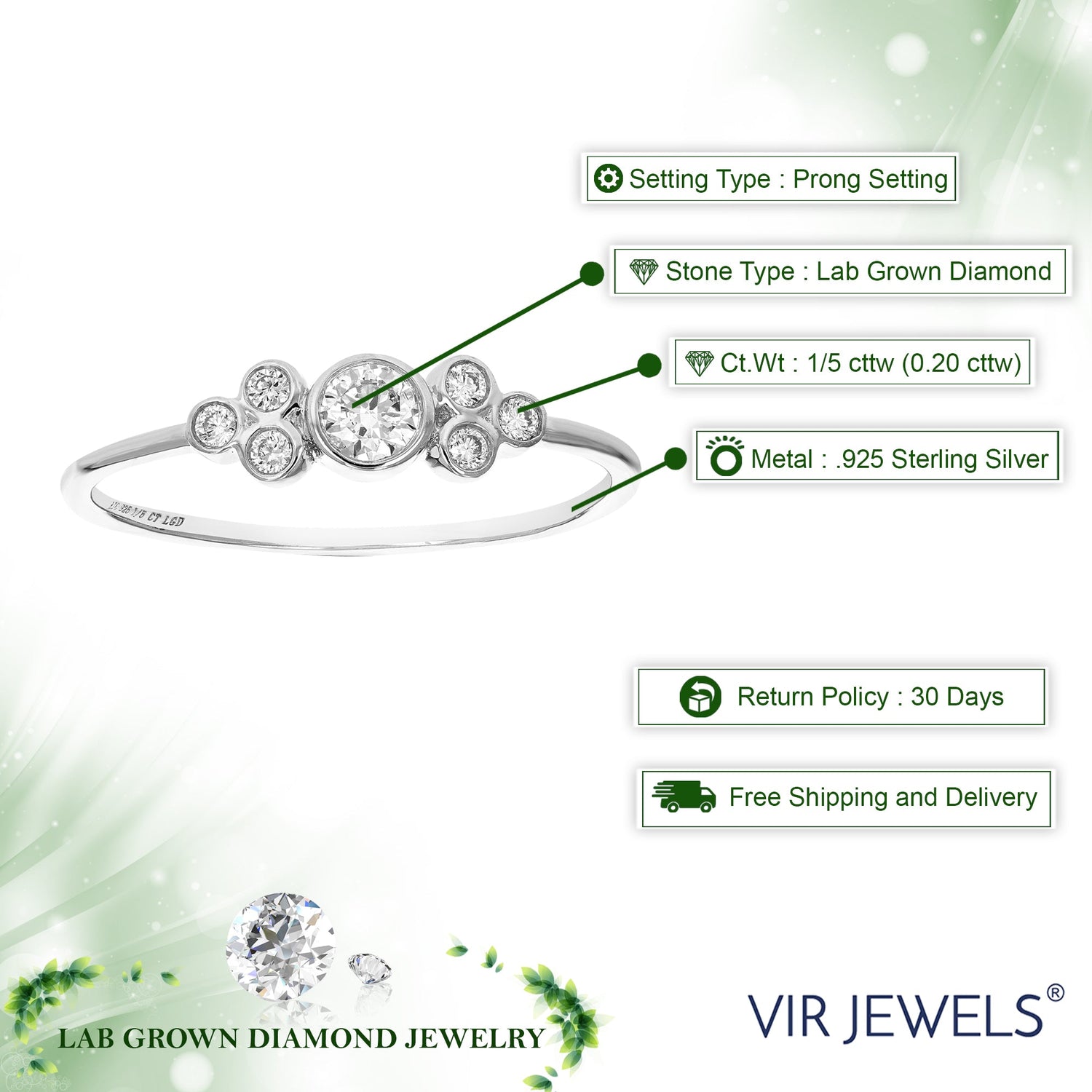 This 1/5 cttw Diamond Engagement Ring for Women by Vir Jewels is a stunning representation of love and elegance. The seven round-cut diamonds, set in a bezel setting, enhance the ring’s brilliance while offering a contemporary twist on traditional design. Crafted from .925 sterling silver, this ring’s subtle beauty is perfect for the modern bride. Whether for a proposal or a symbol of commitment, it’s an exceptional choice for your special moment.