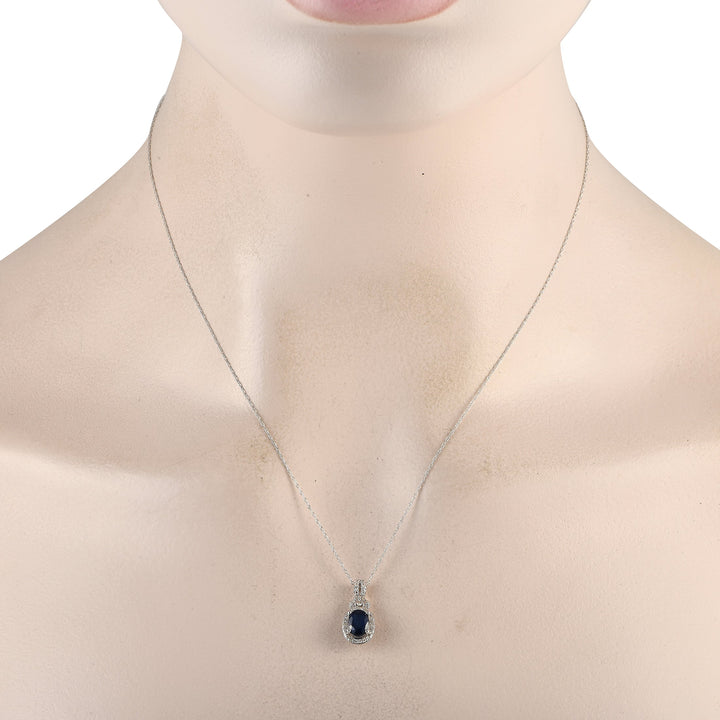 LB Exclusive 14K White Gold 0.15ct Diamond and Sapphire Necklace PD4-15738WSA