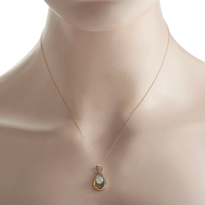 LB Exclusive 14K Yellow Gold 0.03ct Diamond and Opal Pendant Necklace PD4-15537YOP
