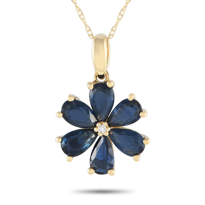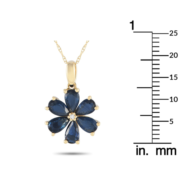LB Exclusive 14K Yellow Gold 0.01ct Diamond and Sapphire Flower Necklace PD4-15845YSA