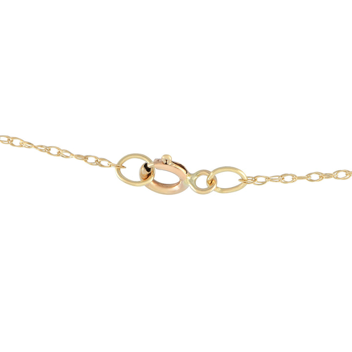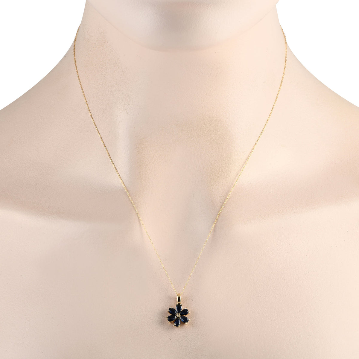 14K yellow gold, 0.01 carat diamond, six sapphire petals, 18-inch chain, spring ring clasp.