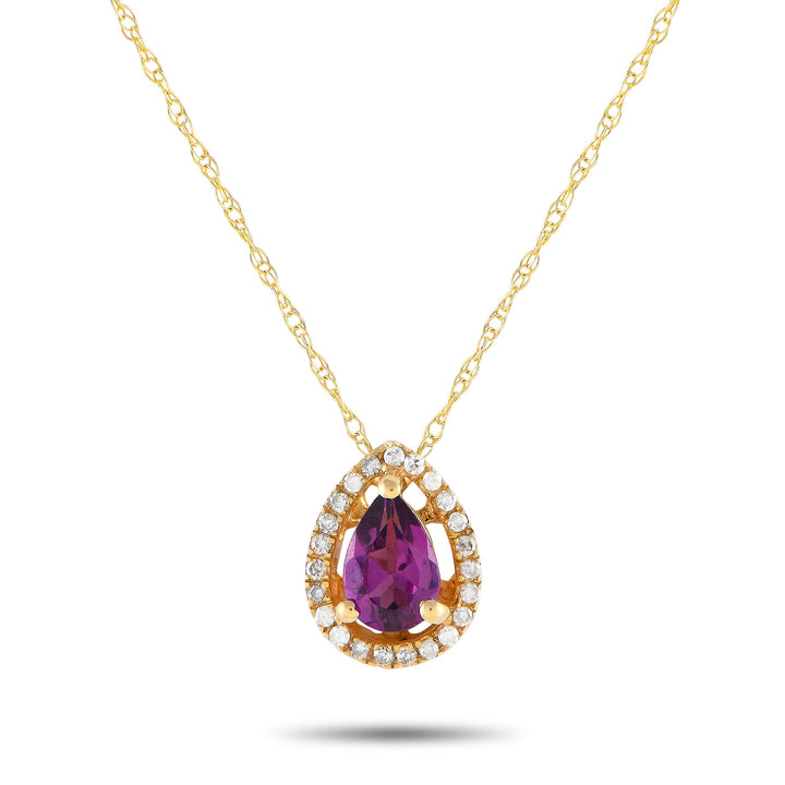 LB Exclusive 14K Yellow Gold 0.07ct Diamond and Rhodolite Pear Necklace PD4-15556-YRHOD