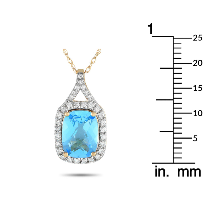 LB Exclusive 14K Yellow Gold 0.13ct Diamond and Blue Topaz Necklace PD4-15472YBT