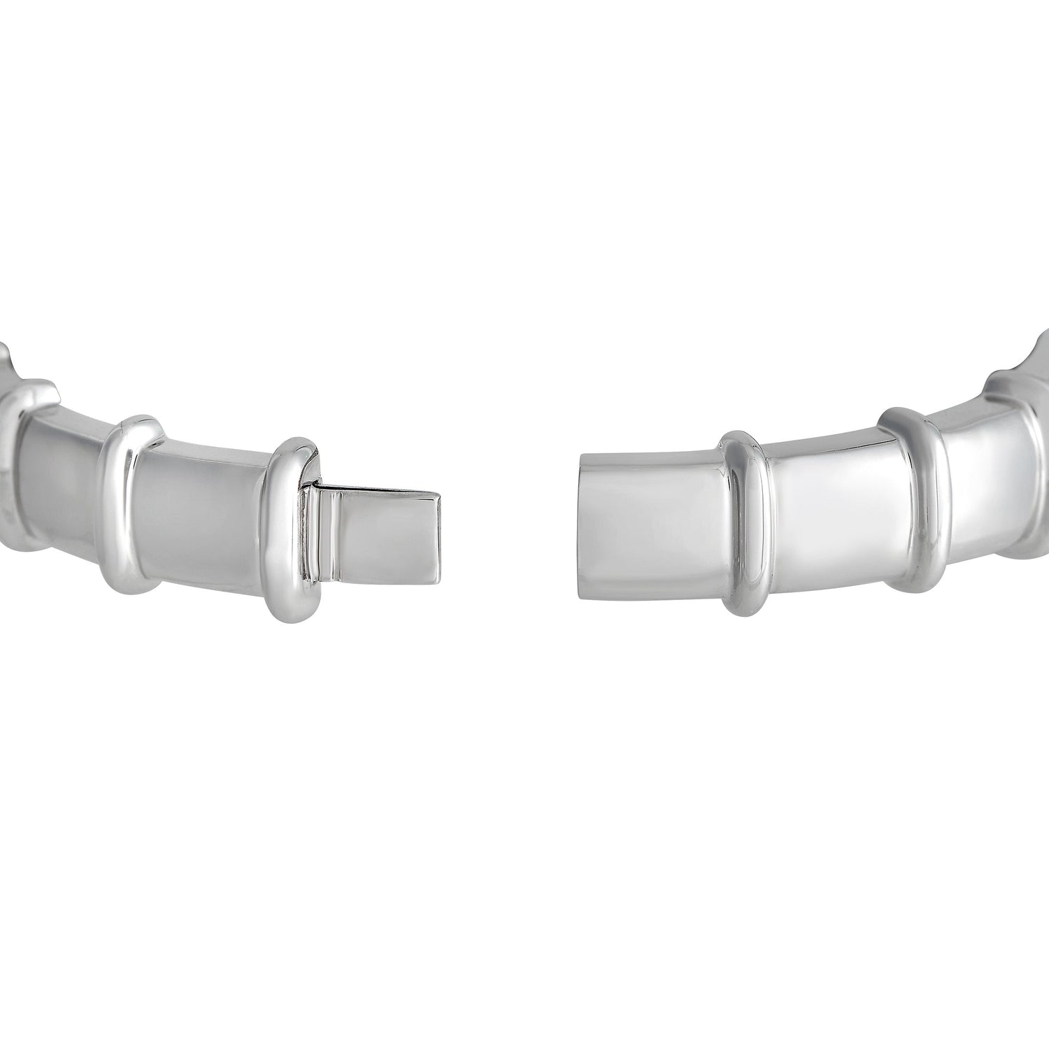 The LB Exclusive 18K White Gold 2.02ct Diamond Bracelet combines classic luxury with modern design. This rigid bracelet is crafted from 18K white gold and features polished collars that add interest and texture. The focal point of the bracelet is a cluster of diamonds totaling 2.02 carats, adding a subtle yet stunning sparkle. Perfect for both daytime and evening wear, this piece is an elegant addition to any jewelry collection.