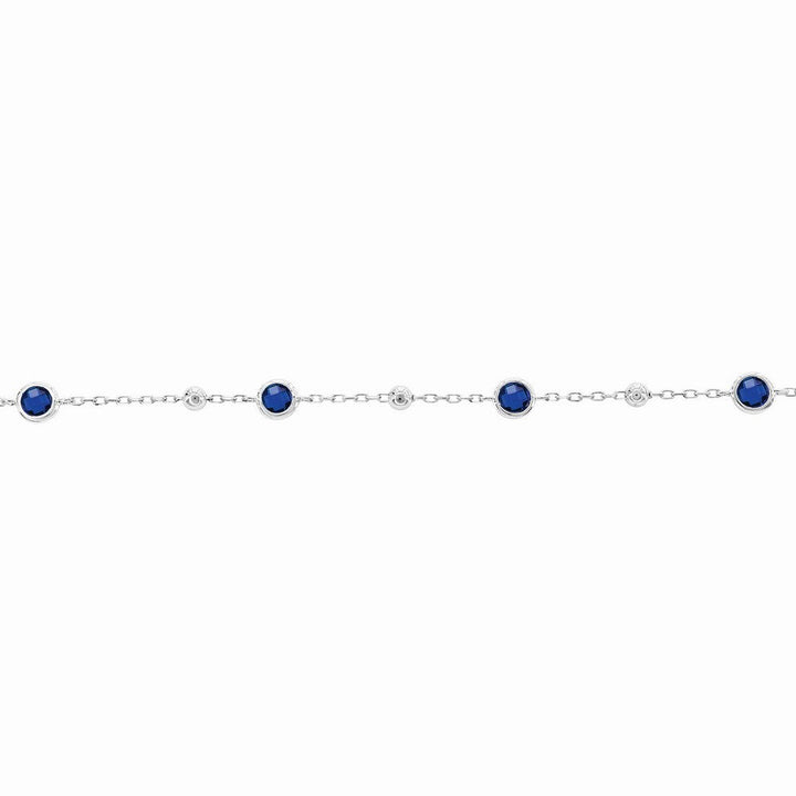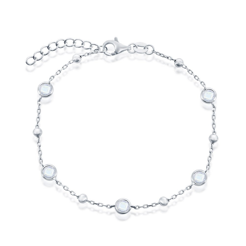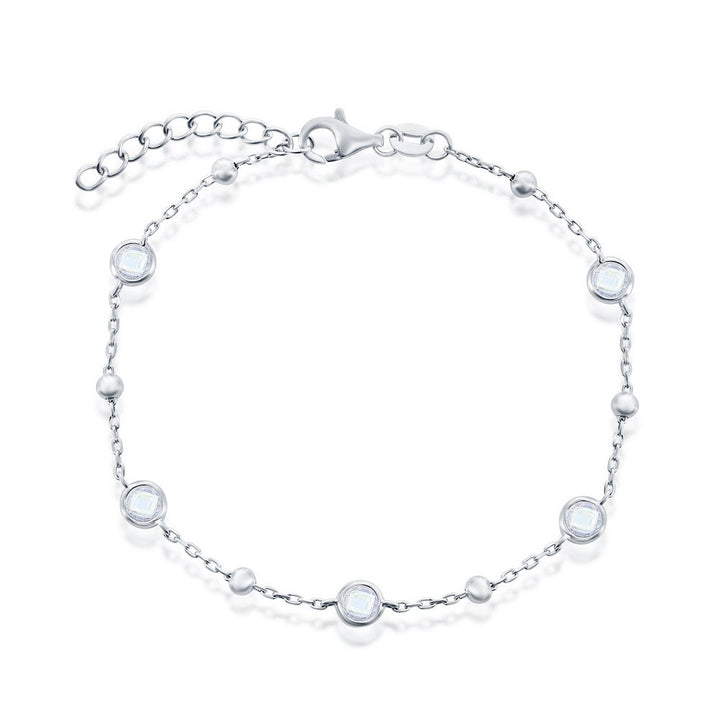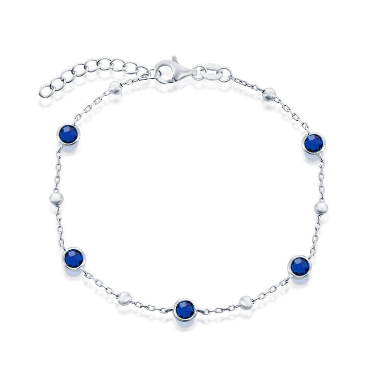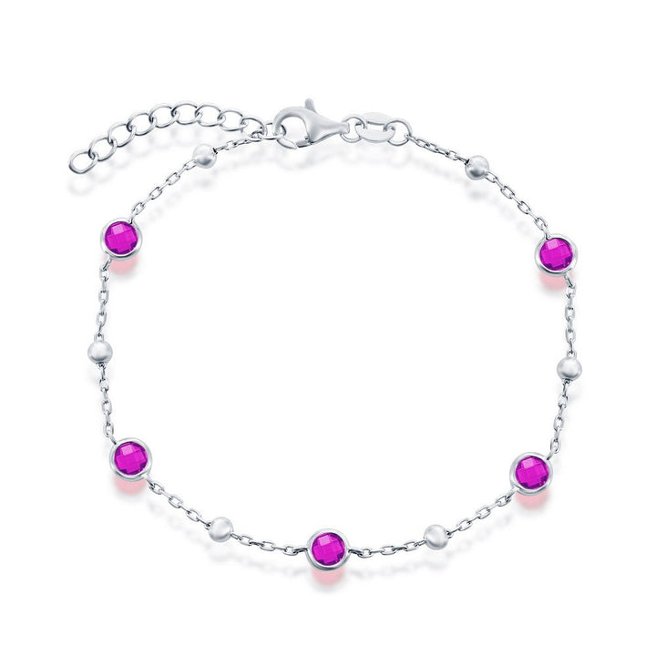 Sterling Silver Bezel-Set and CZ Bead Bracelet (White, Green, Blue Or Red)