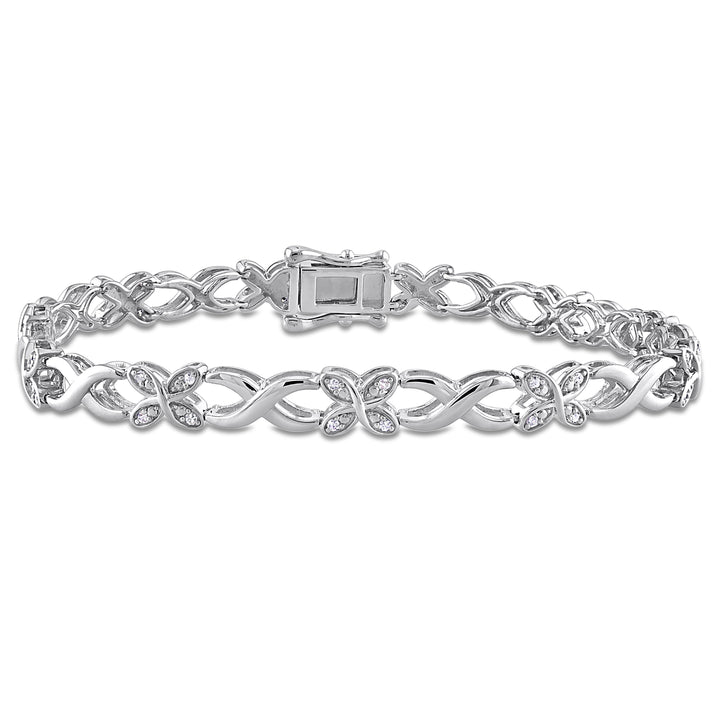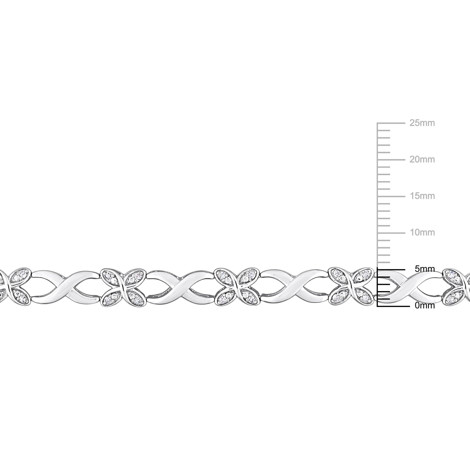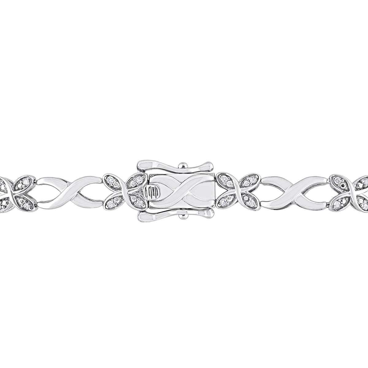 Crafted in sterling silver with 1/5 carat total diamond weight. Features diamond clarity: I2-I3 and diamond color: H-I. Bracelet measures 7.25” with a lobster clasp closure.