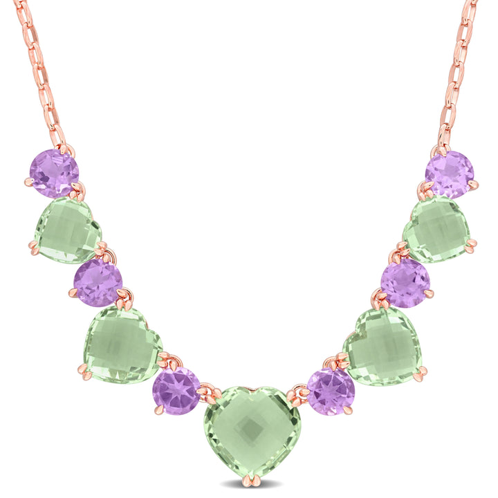 Mimi & Max 36 5/8ct TGW Green Quartz & Amethyst Alternate Necklace in Rose Plated Sterling Silver - 17 in