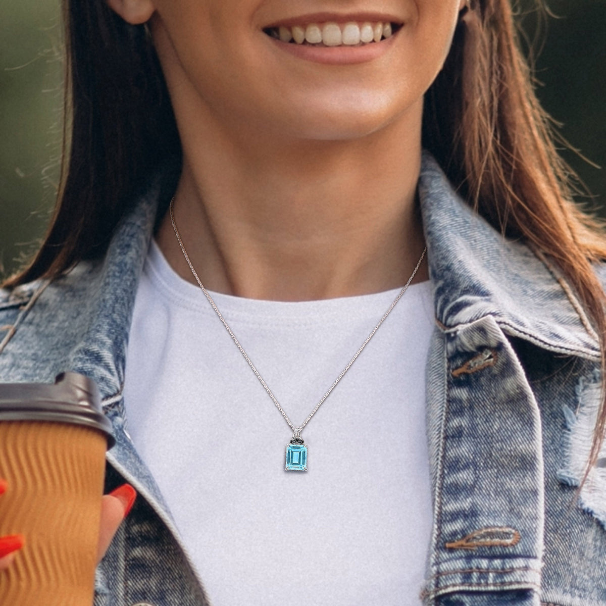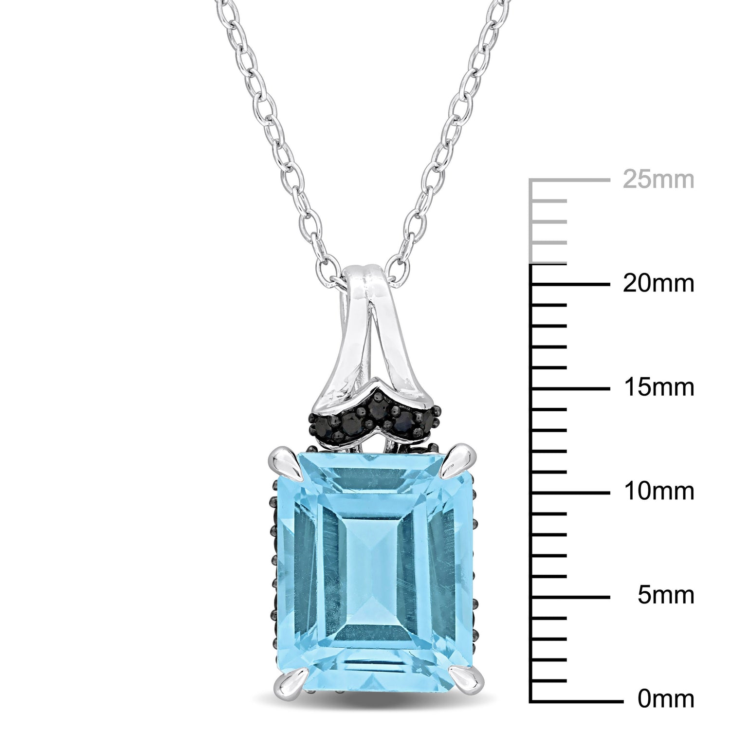 Crafted with 7 3/4ct TGW sky blue topaz (octagon-cut) and black sapphires (round-cut). Made of sterling silver with a high-polish finish.