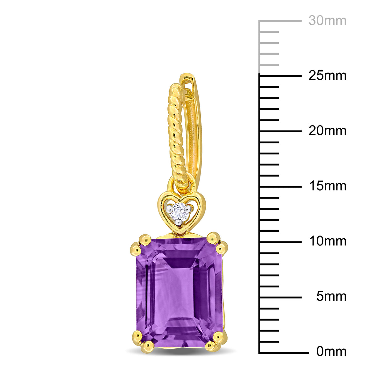 Mimi & Max 6 1/2ct TGW Octagon-Cut Amethyst and White Topaz Heart Earrings in Yellow Silver