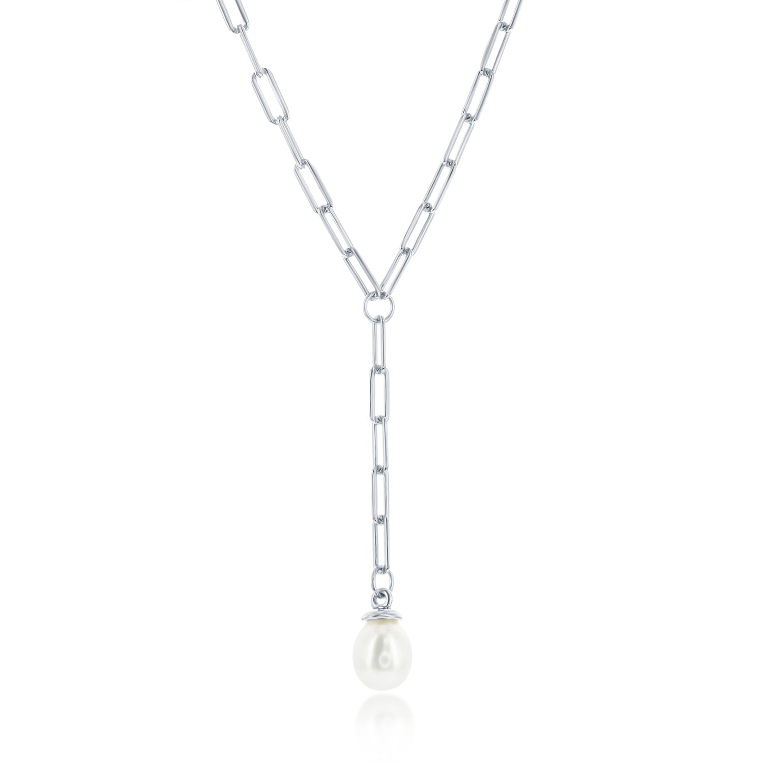 Sterling Silver or Gold Plated Over Sterling Silver Freshwater Pearl Paperclip Necklace