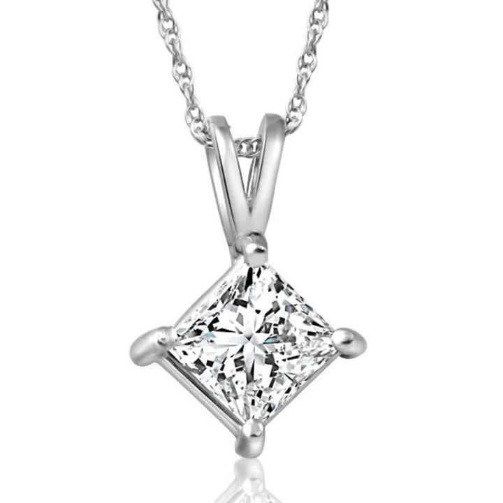 1Ct Princess Cut Diamond Solitaire Pendant 14k White Gold Necklace Lab Grown