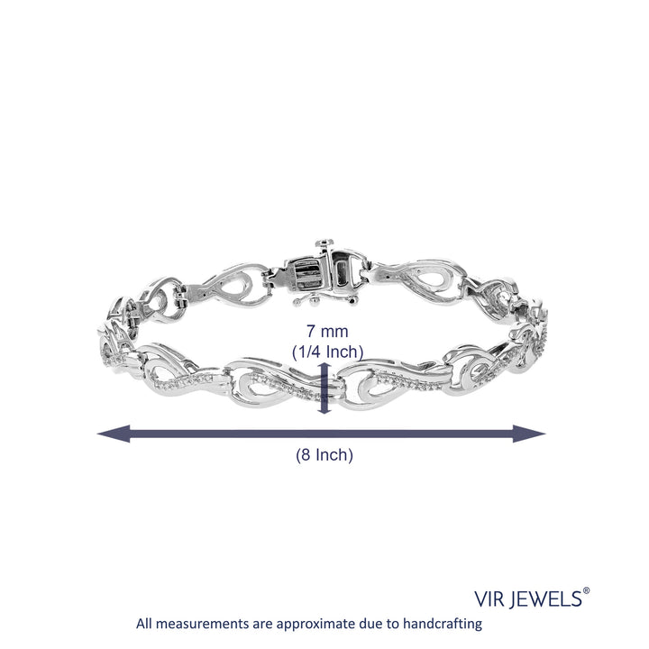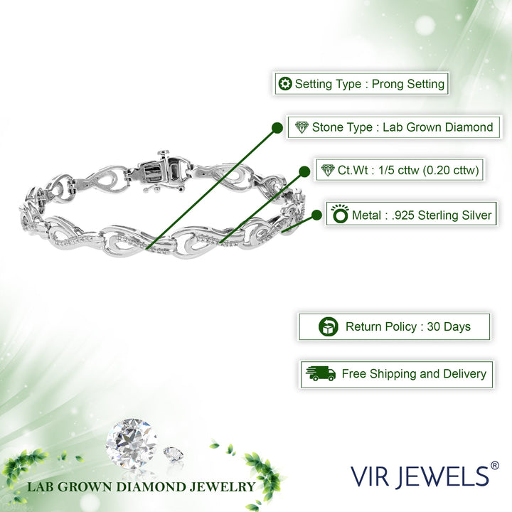 .925 sterling silver bracelet, 1/5 cttw lab-grown diamonds (26 stones), round-cut diamonds, H-I color, SI1-SI2 clarity, prong setting. Bracelet length - 8.5 inches; Width - 7mm (1/4 inch).