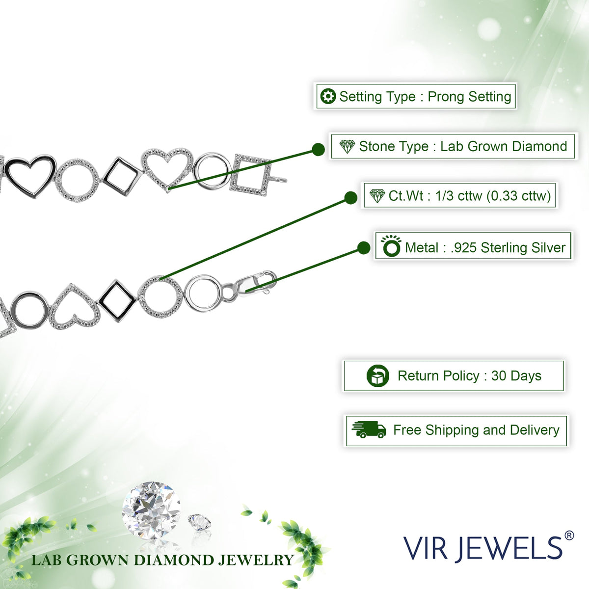 .925 sterling silver tennis bracelet, 1/3 cttw lab-grown diamonds (48 stones), round-cut diamonds, H-I color, SI1-SI2 clarity, prong setting. Bracelet length: 7.5 inches; Width - 6mm (1/4 inch).