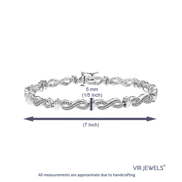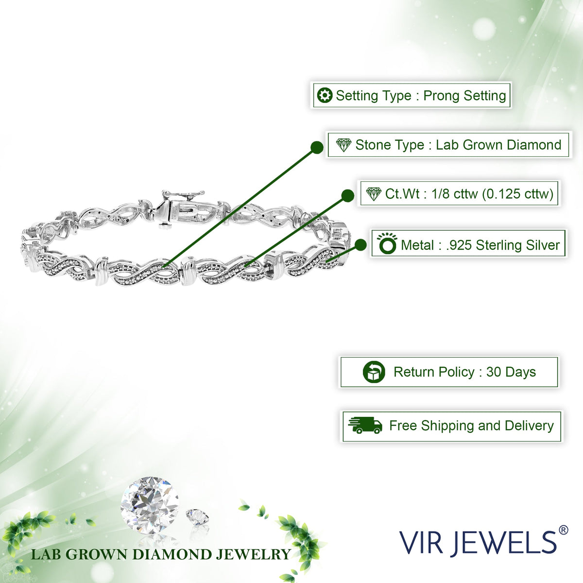 This 1/8 cttw Lab Created Diamond Tennis Bracelet by Vir Jewels features 55 sparkling diamonds set in a prong setting along a sleek, polished .925 sterling silver bracelet. Perfect for special occasions or as an everyday accessory, this elegant tennis bracelet adds a sophisticated touch to any outfit.