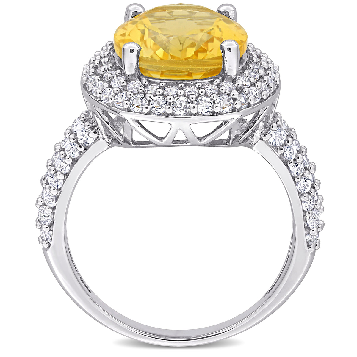 Sterling silver with 5 5/8ct TGW oval-cut citrine and white topaz in a double halo setting.