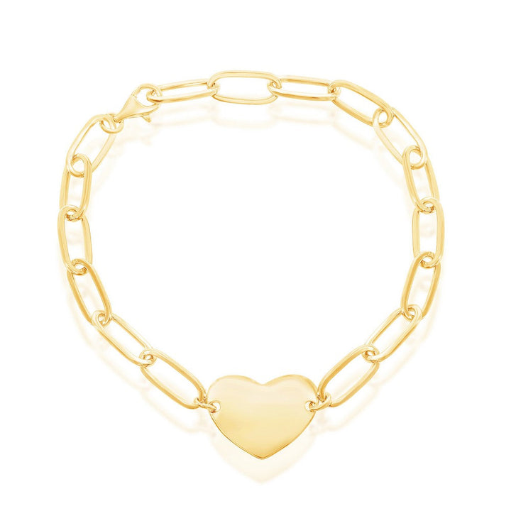 Sterling silver or gold-plated over sterling silver with polished heart design and paperclip chain links.