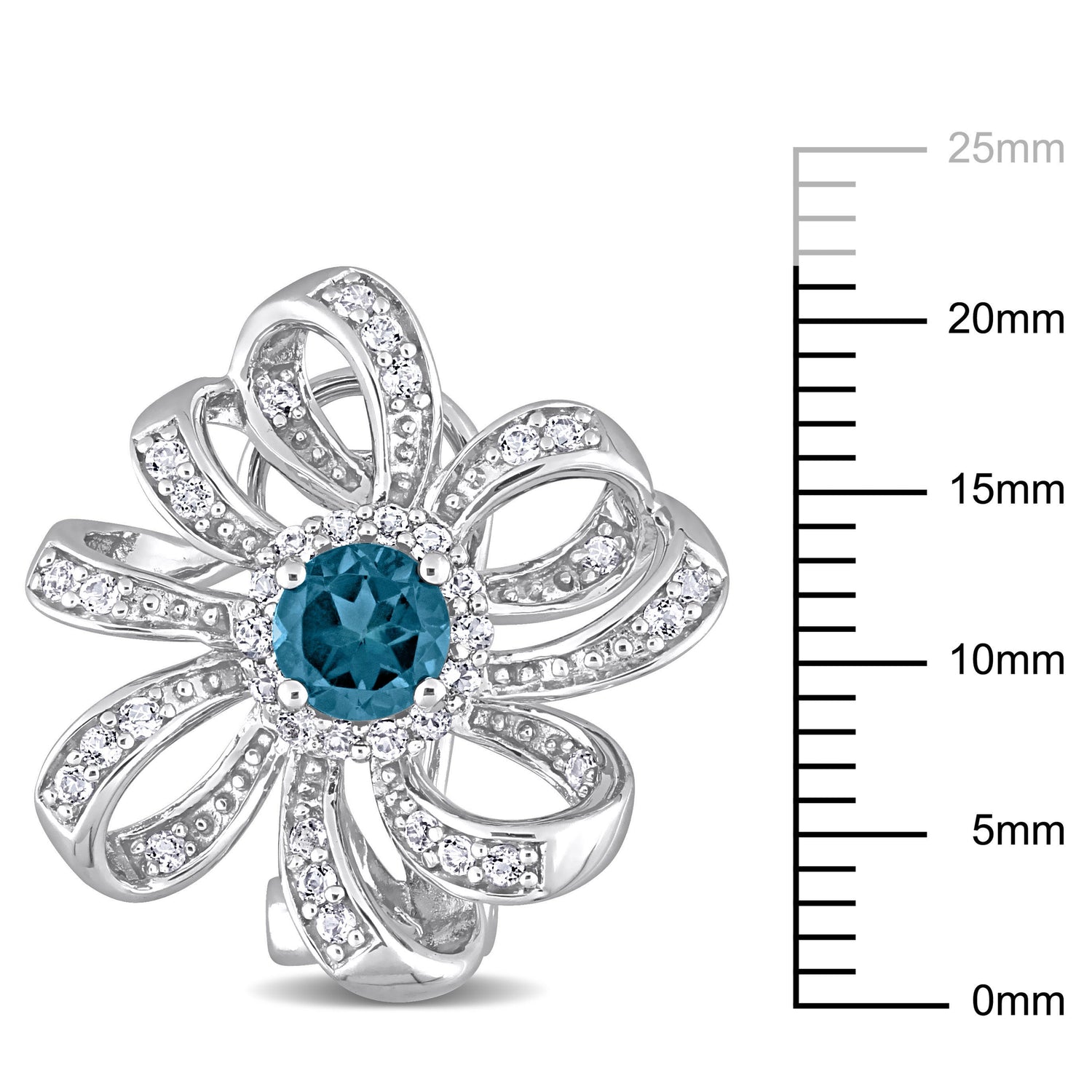 Mimi & Max 1 7/8ct TGW London Blue Topaz and White Topaz Flower Clip Earrings in Sterling Silver