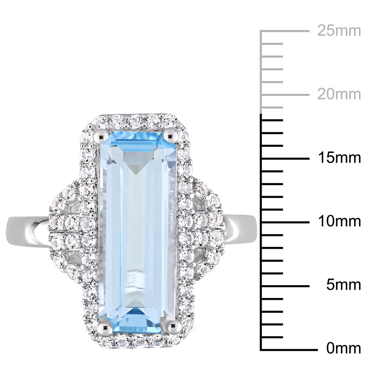 Crafted in sterling silver with 3 3/4-carat octagon-cut blue topaz and 50 prong-set round-cut white topaz (1/2 cttw total). Ring setting dimensions: 5.7mm wide x 20.8mm long x 4.6mm high. Band width: 1.6mm.