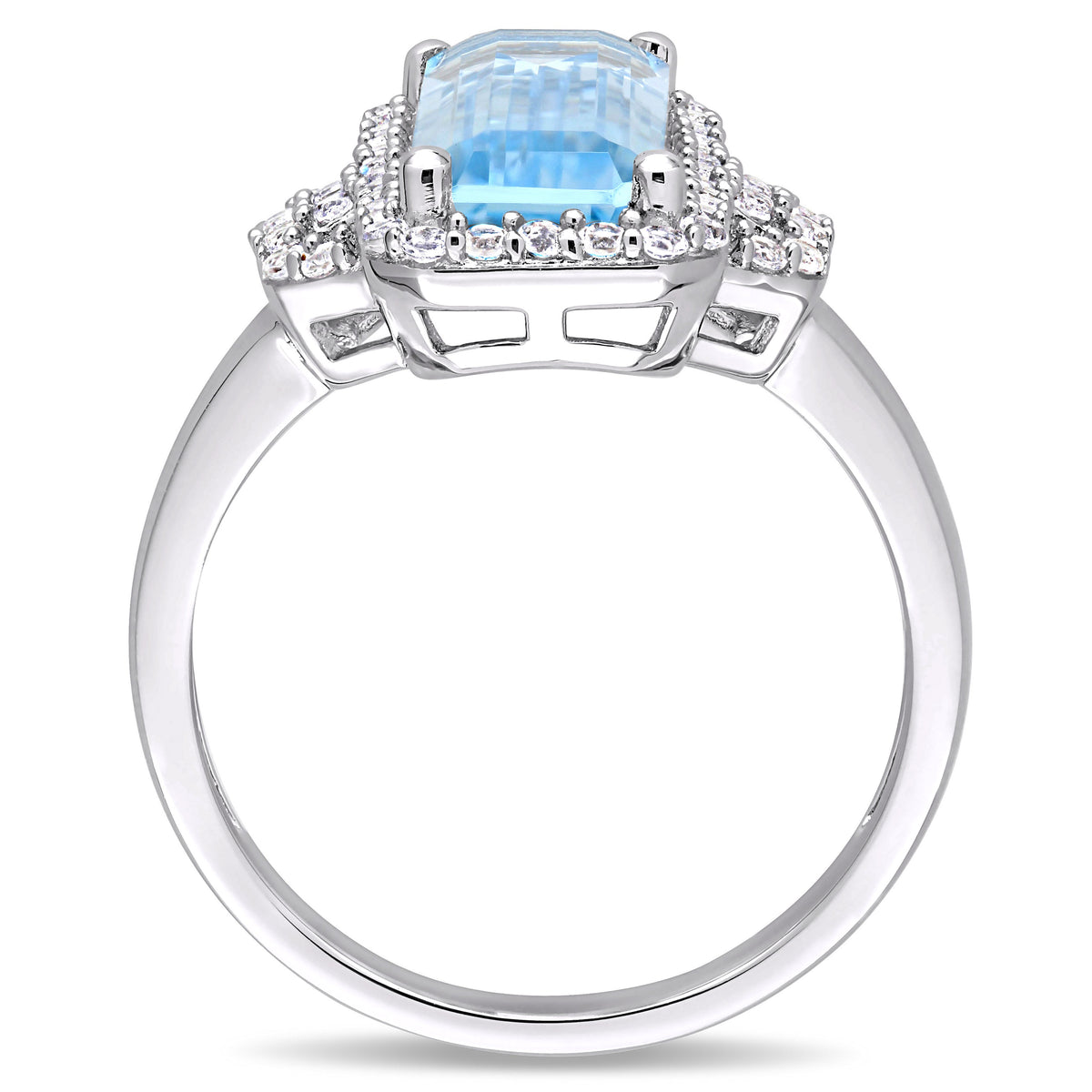 Mimi & Max 4 1/4ct TGW Octagon Cut Blue Topaz and White Topaz Halo Ring in Sterling Silver
