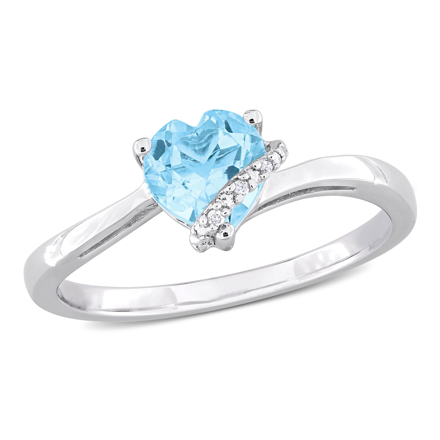Crafted in sterling silver with a 1ct TGW heart-shaped sky blue topaz and diamond accents.
