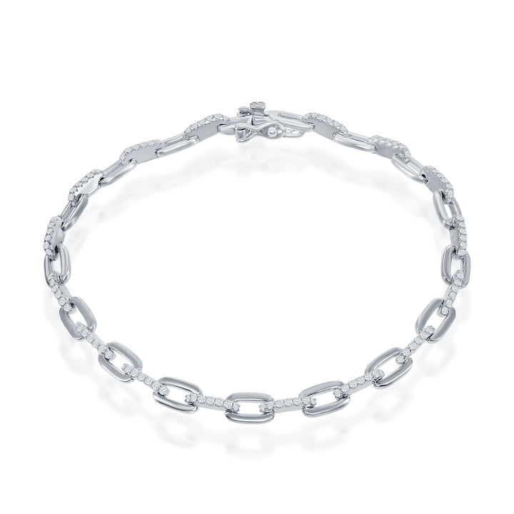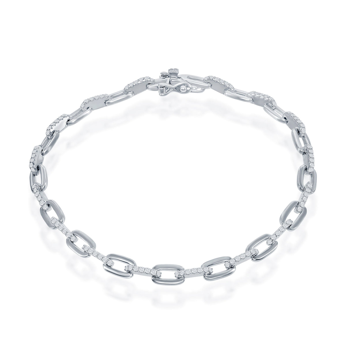 Sterling Silver or Gold Plated Over Sterling Silver CZ Paperclip Bracelet