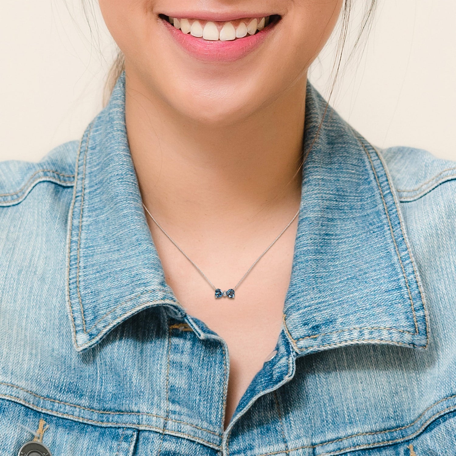 Mimi & Max 1ct TGW London Blue Topaz and Diamond Accent Necklace in 10k White Gold: This beautiful necklace features two heart-cut London blue topaz gemstones, accented by three round diamonds in a prong and channel setting. The combination of the blue topaz and diamonds creates a striking contrast, making this necklace perfect for adding a pop of color to any outfit.