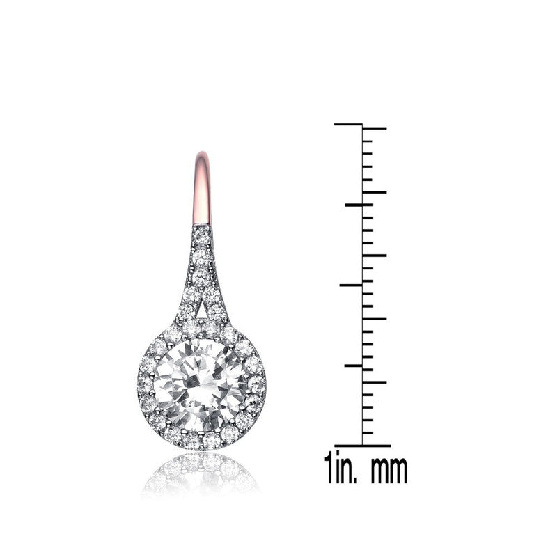 Sterling Silver with Clear Round Cubic Zirconia Partially Paved and Haloed Solitaire Drop Earring