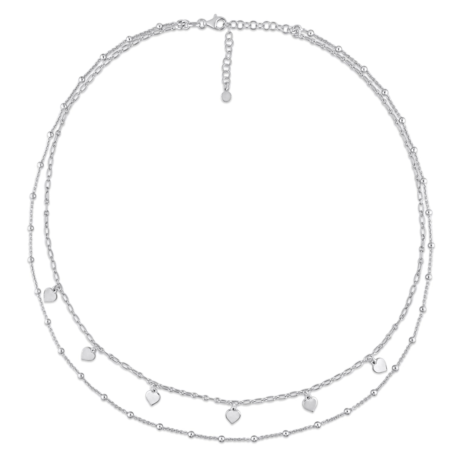 Made from sterling silver with heart and ball beads. Necklace length: 19.5 inches with a lobster clasp closure.