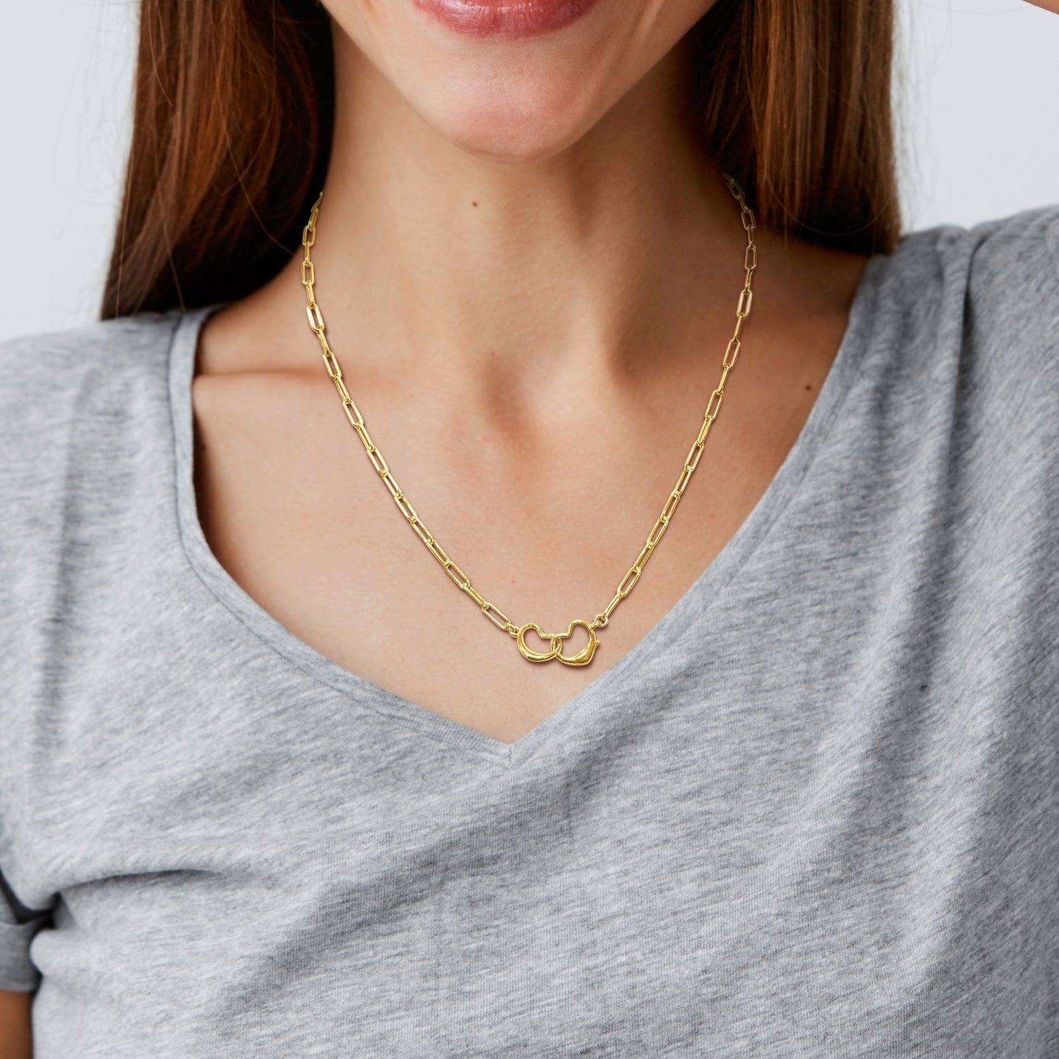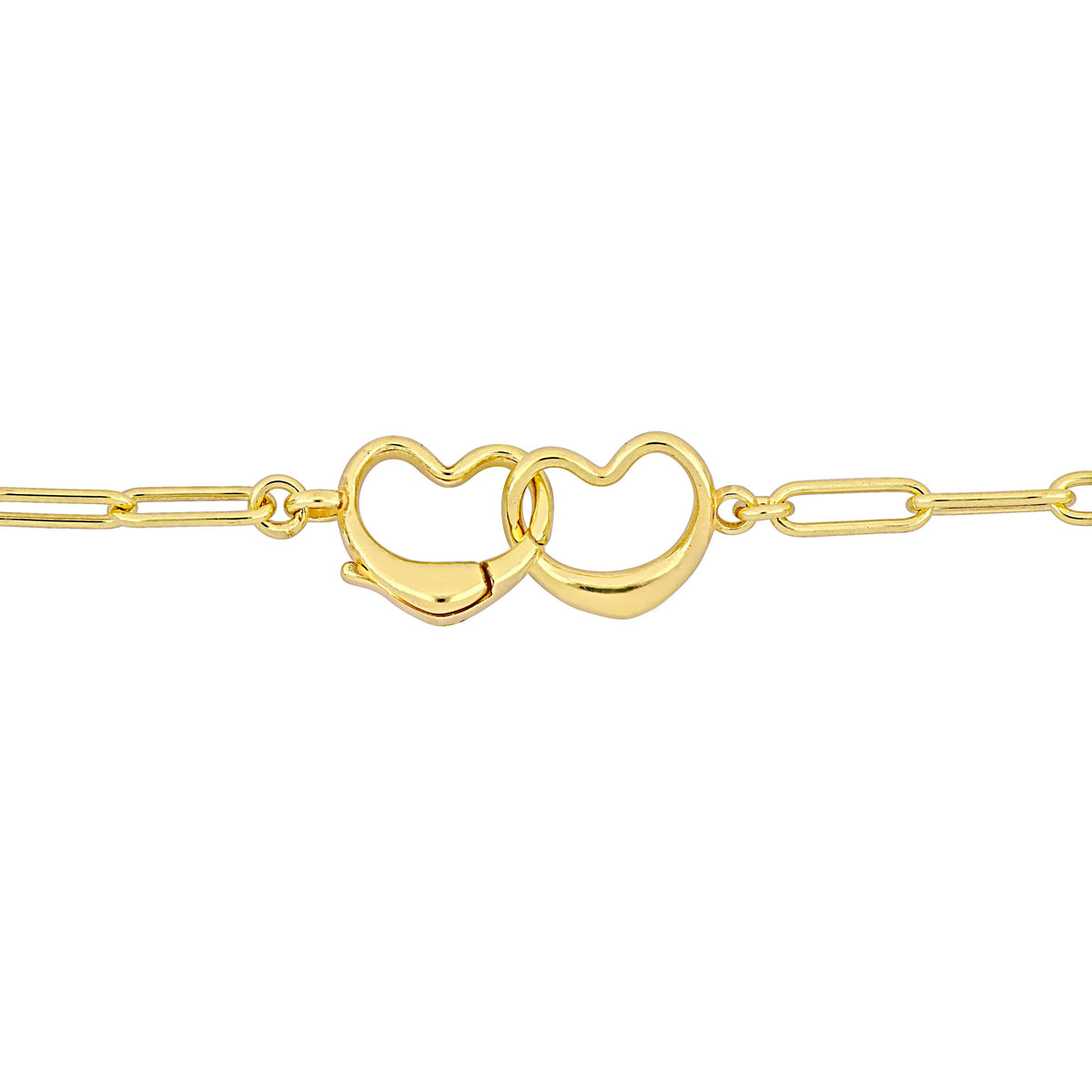 Mimi & Max Double Heart Clasp Paperclip Link Necklace in Yellow Sterling Silver - 20 in