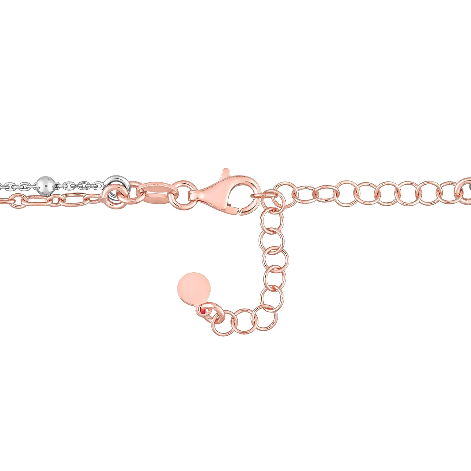 Crafted in rose gold-plated sterling silver. Length: 19.5 inches. Features heart and bead accents. Secured with a lobster clasp. Made in Italy.