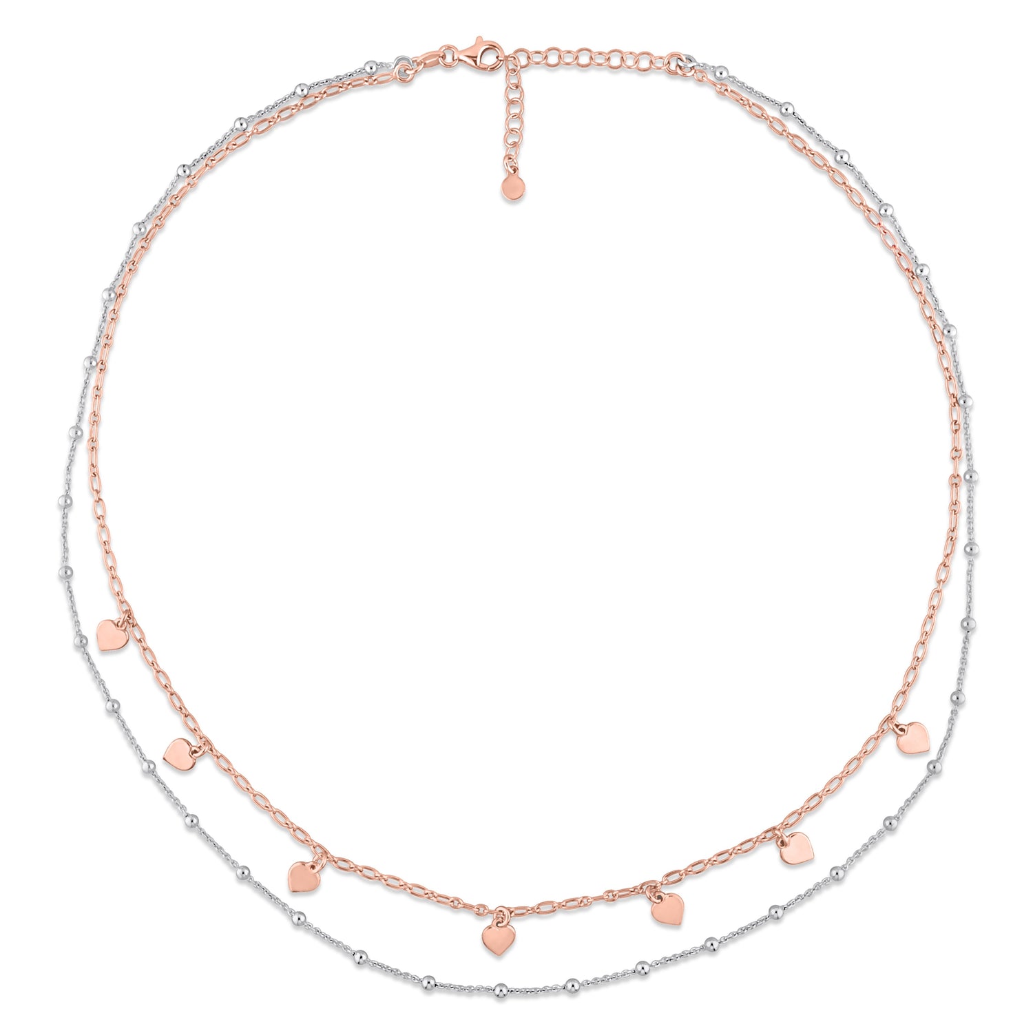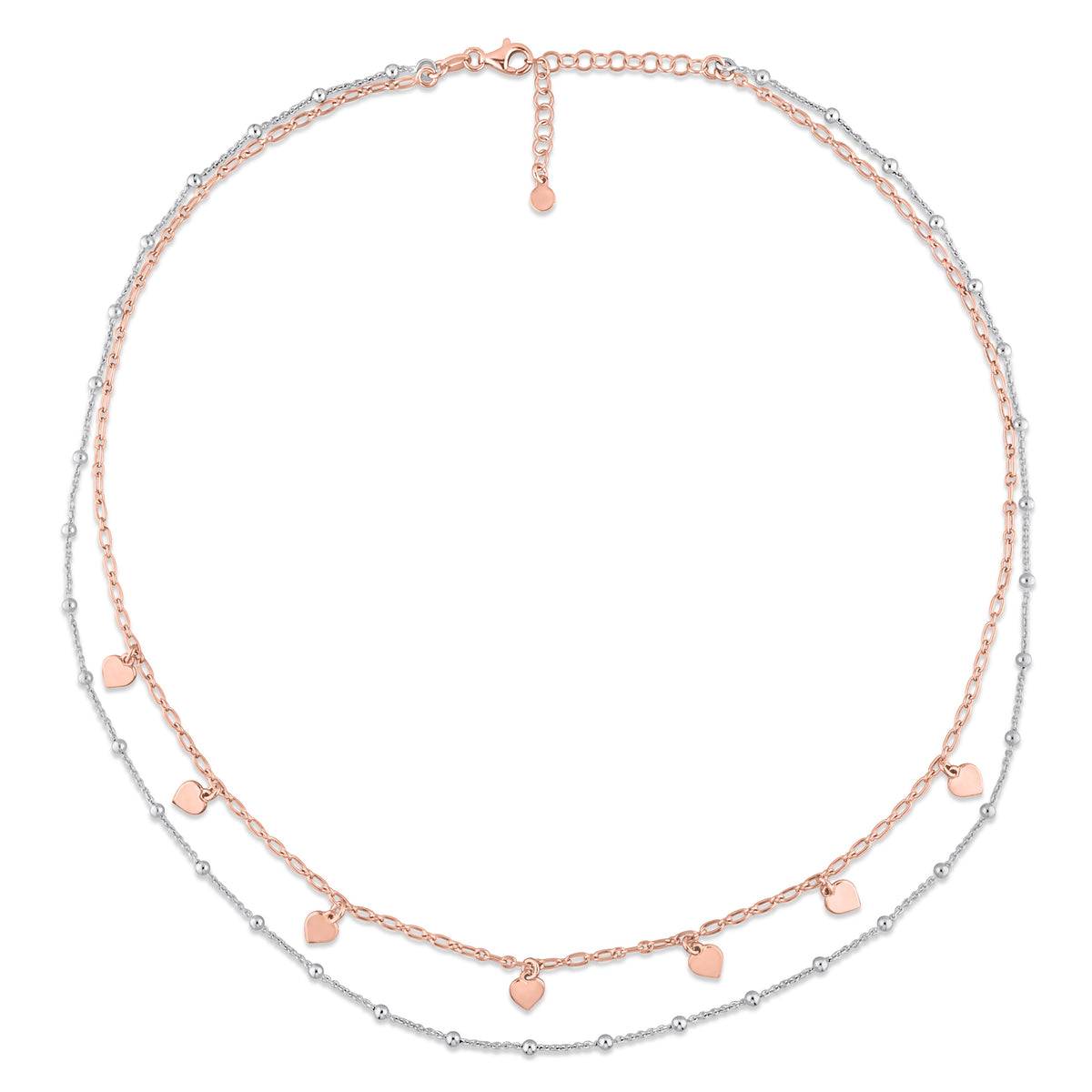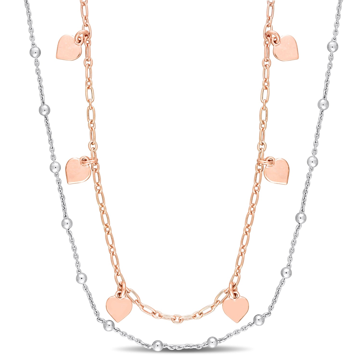 Mimi & Max Two-Tone Heart and Ball Bead Chain Necklace in Rose Plated Sterling Silver - 19.5 in