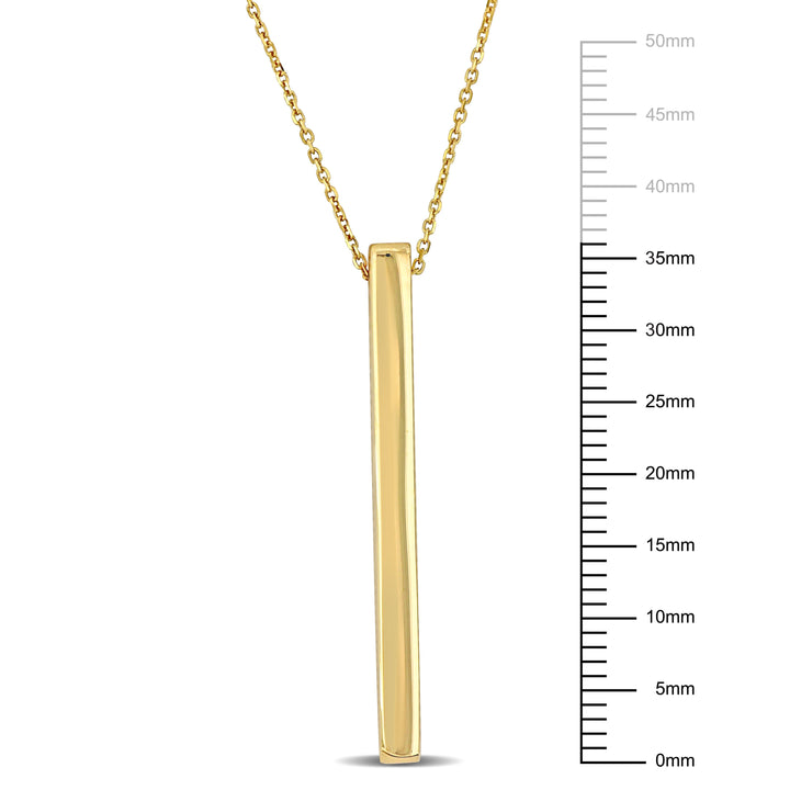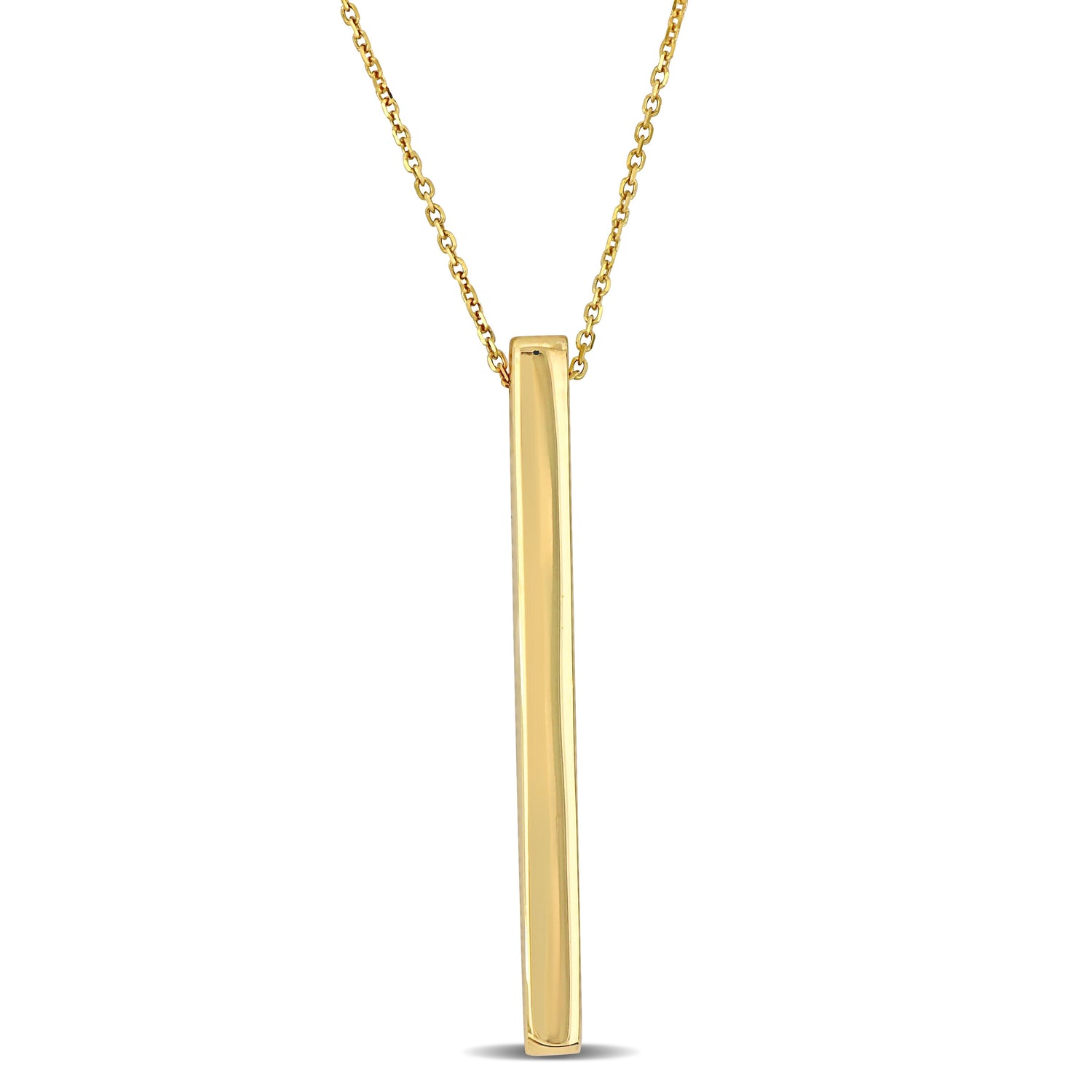 Crafted in 14K yellow gold with a 3.5cm vertical bar pendant. Length: 16.5 inches.
