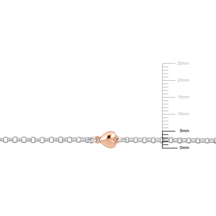 Mimi & Max Four Heart Charm Station Necklace in Two-Tone Rose and White Sterling Silver-16.5+1 in