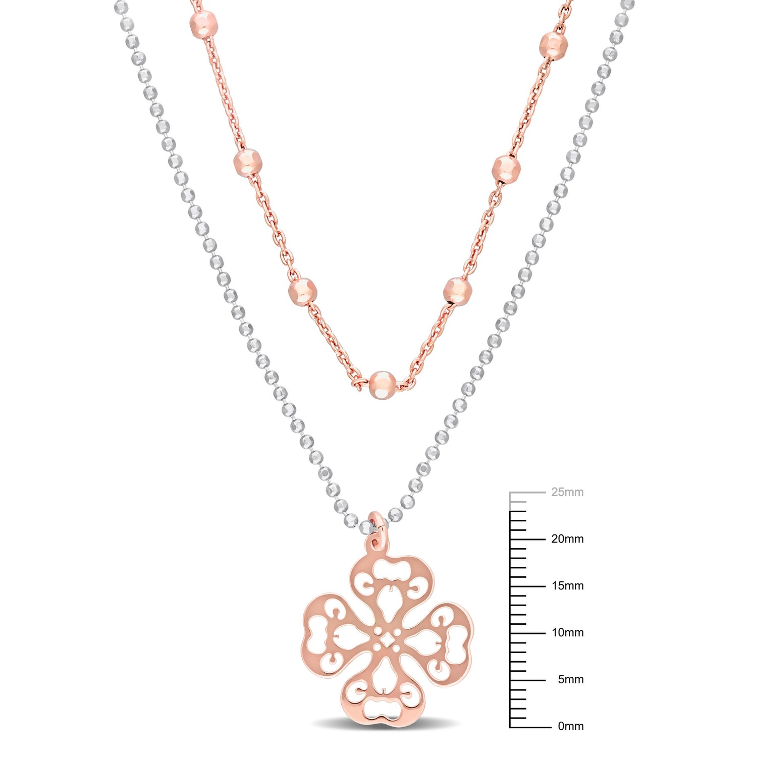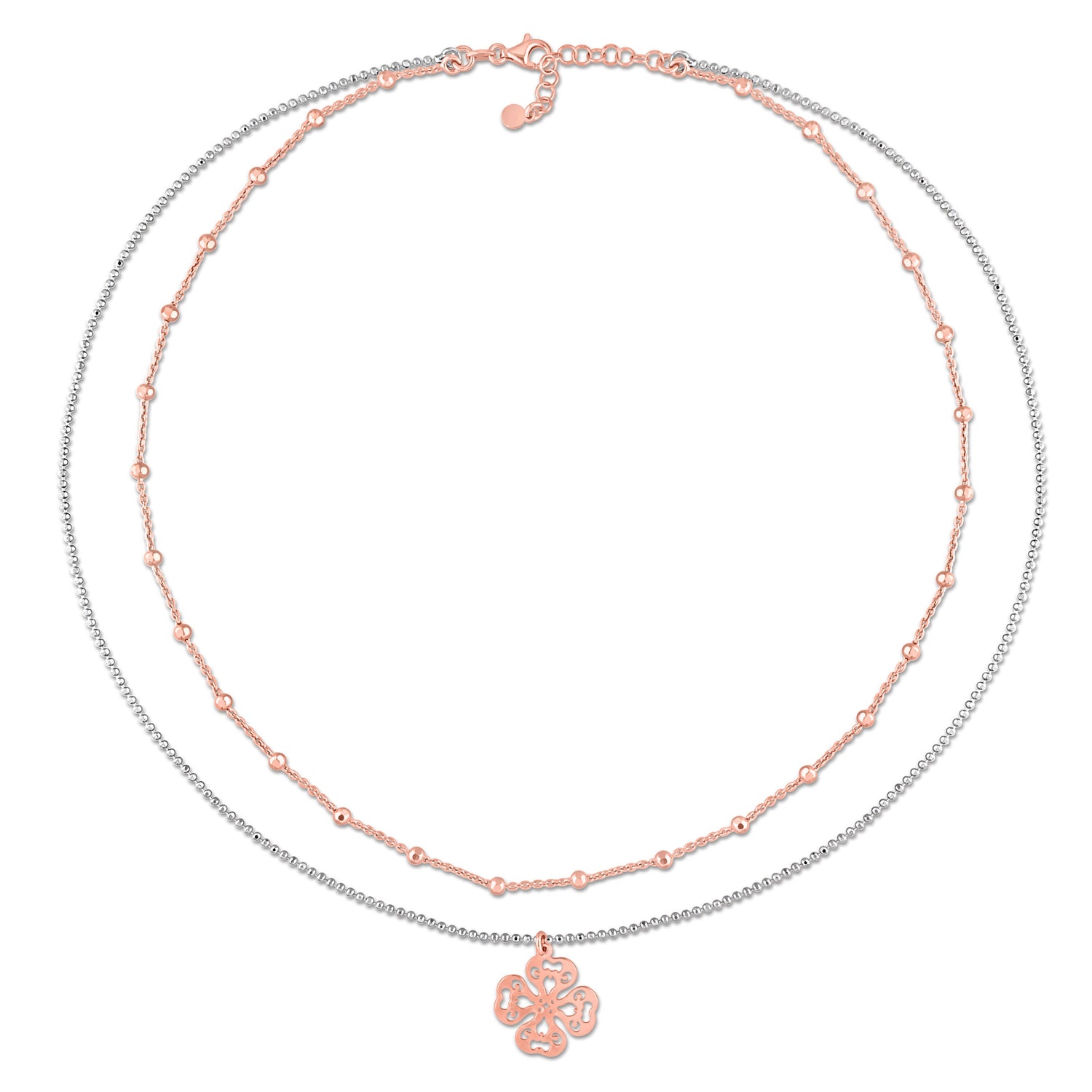 Mimi & Max Two-Tone 2-Strand Ball Bead Chain Necklace in Rose Plated Sterling Silver - 19 in
