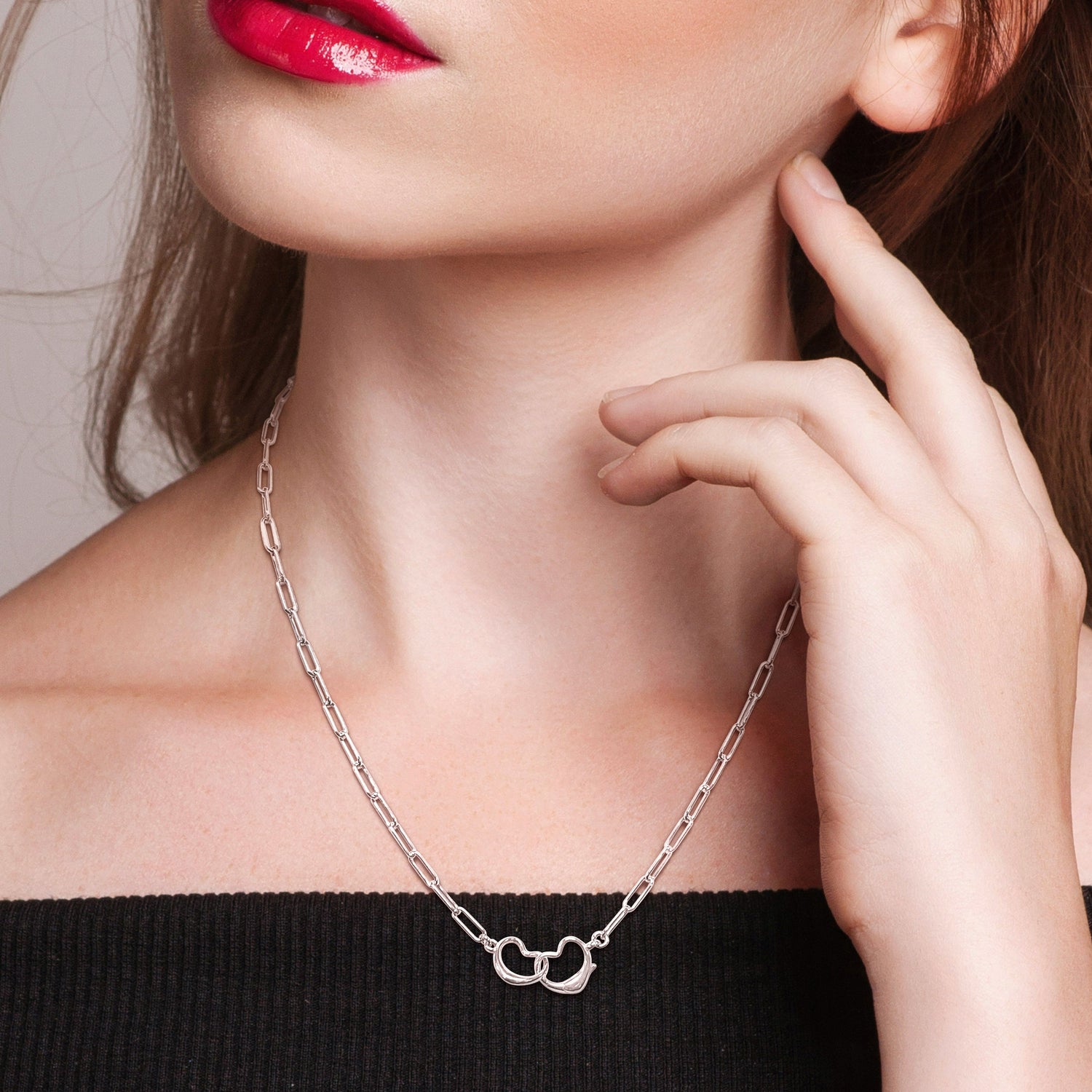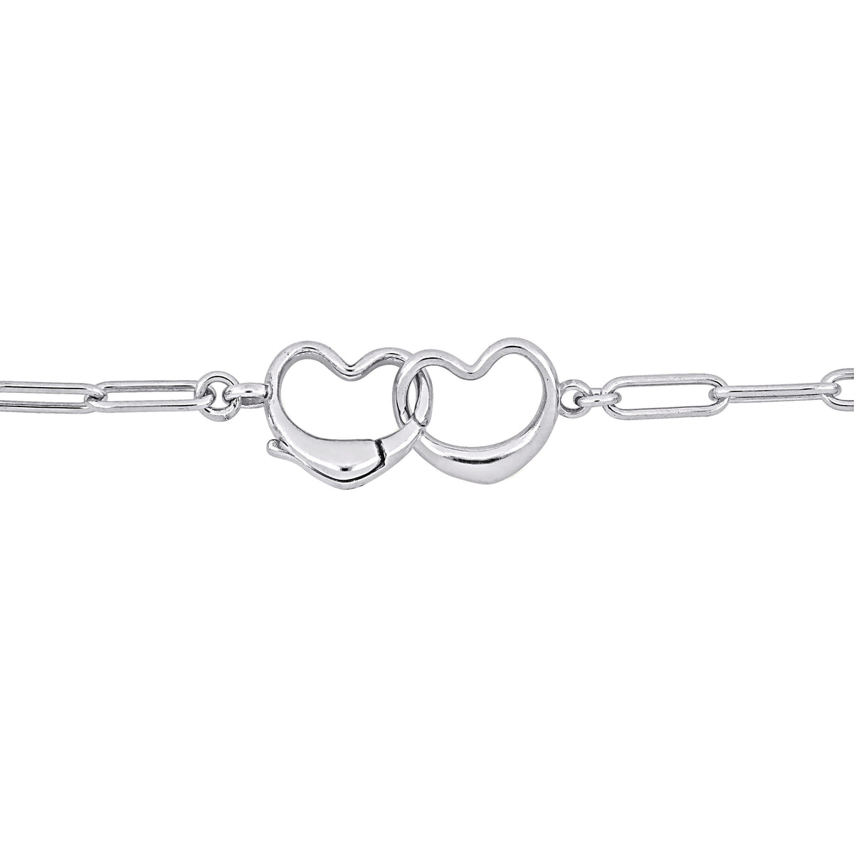 Mimi & Max Paper Clip Link Necklace with Double Heart Clasp in Sterling Silver - 20 in