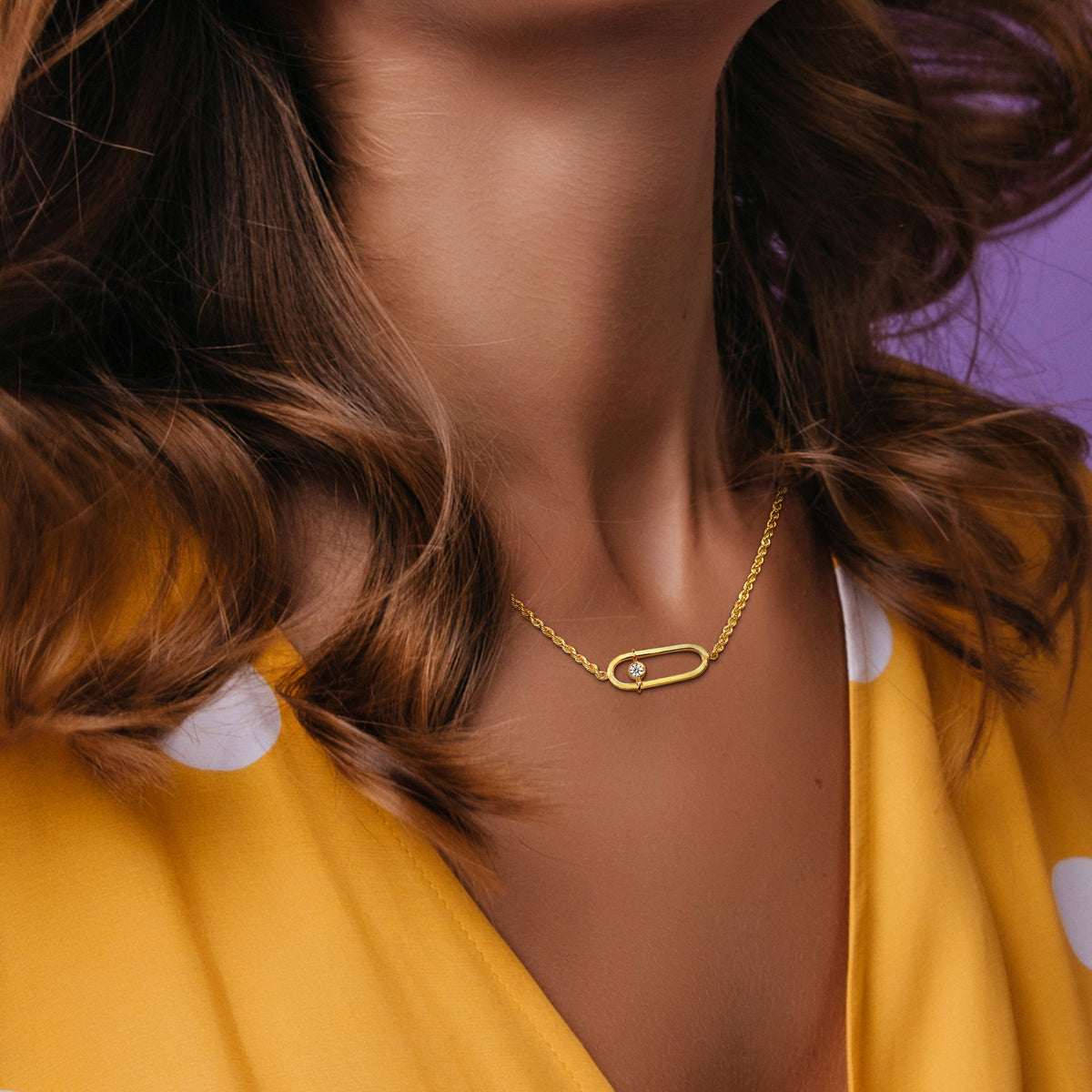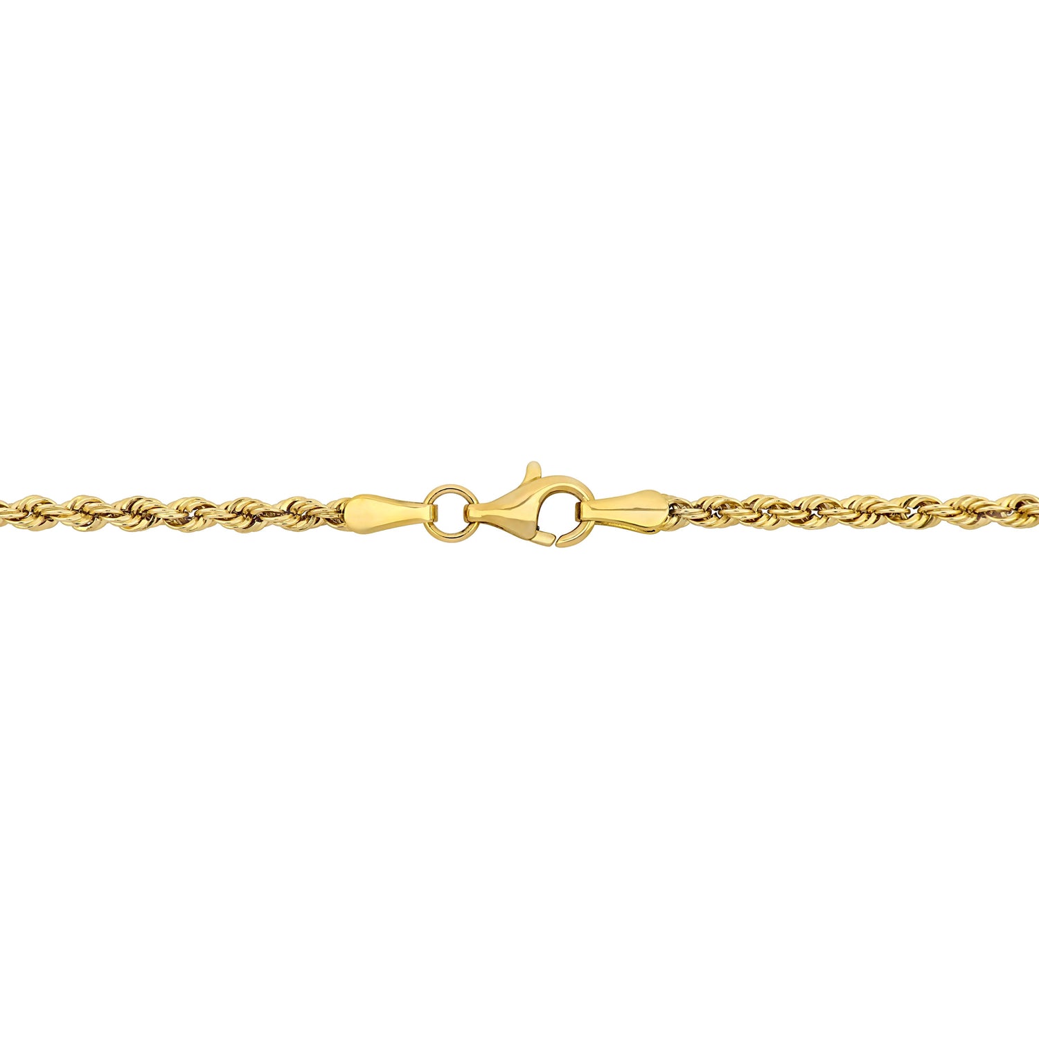 10K yellow gold, cubic zirconia oval charm, 18-inch rope chain.