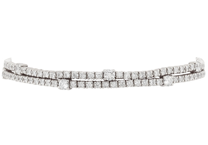 This 4.50 Carat Diamond Tennis Bracelet by Diana M embodies the ultimate in classic sophistication. Featuring a double row of dazzling round diamonds set in luminous white gold, this bracelet exudes elegance and grace. Perfect for special occasions or as a timeless everyday luxury, its fluid design ensures it drapes beautifully on the wrist, making it an enduring investment in sparkle and style.