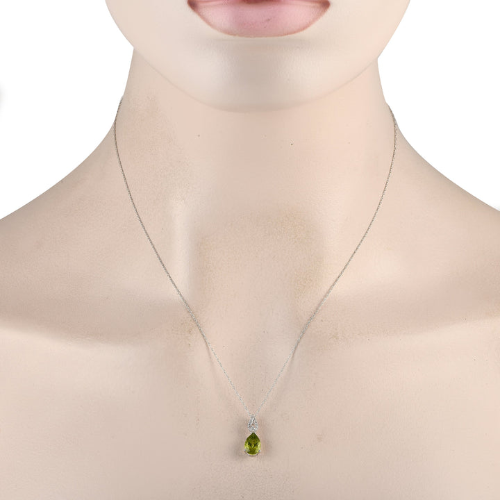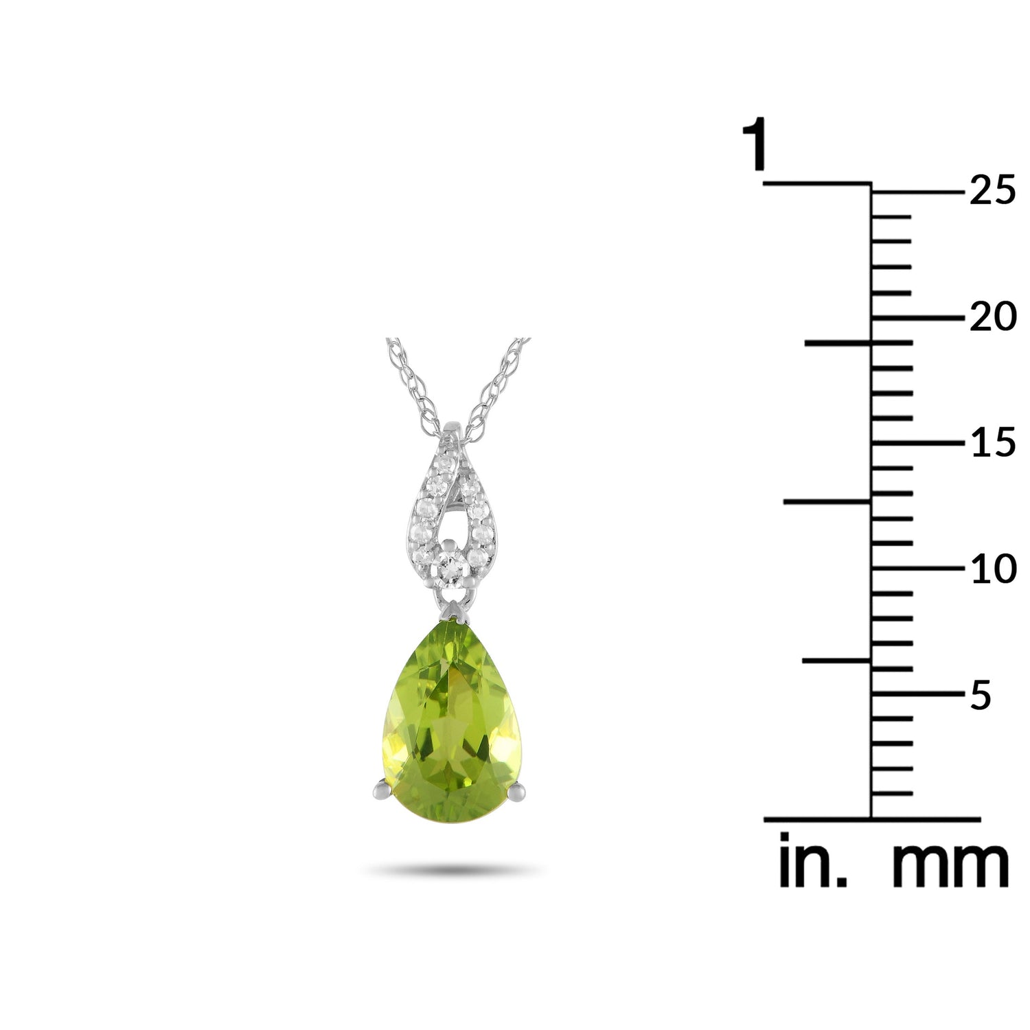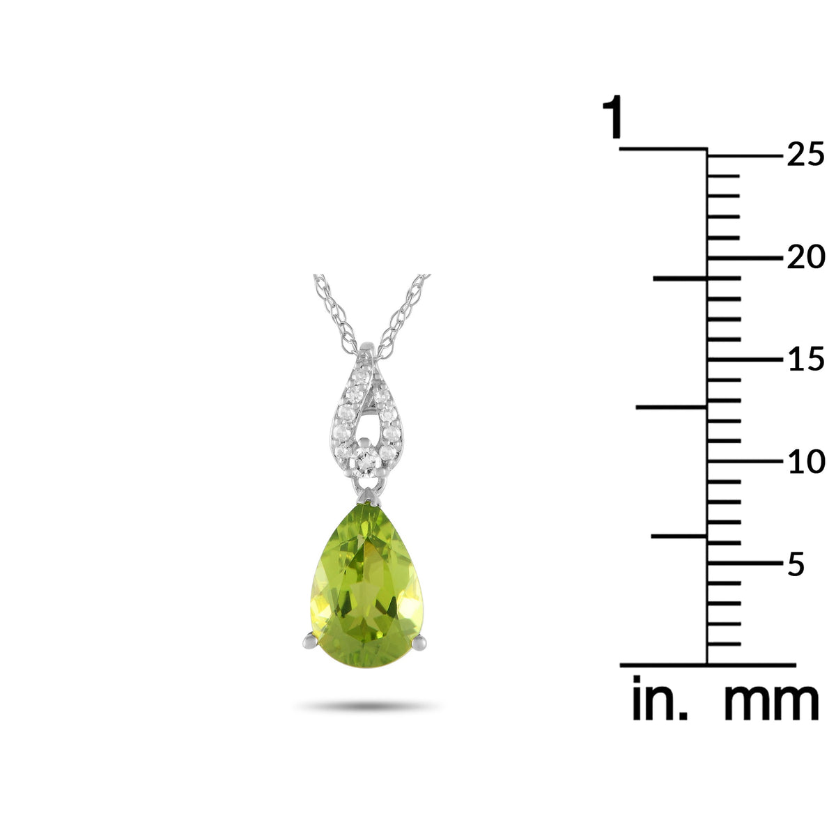LB Exclusive 14K White Gold 0.06ct Diamond and Pear-Cut Peridot Necklace PD4-16184WPE