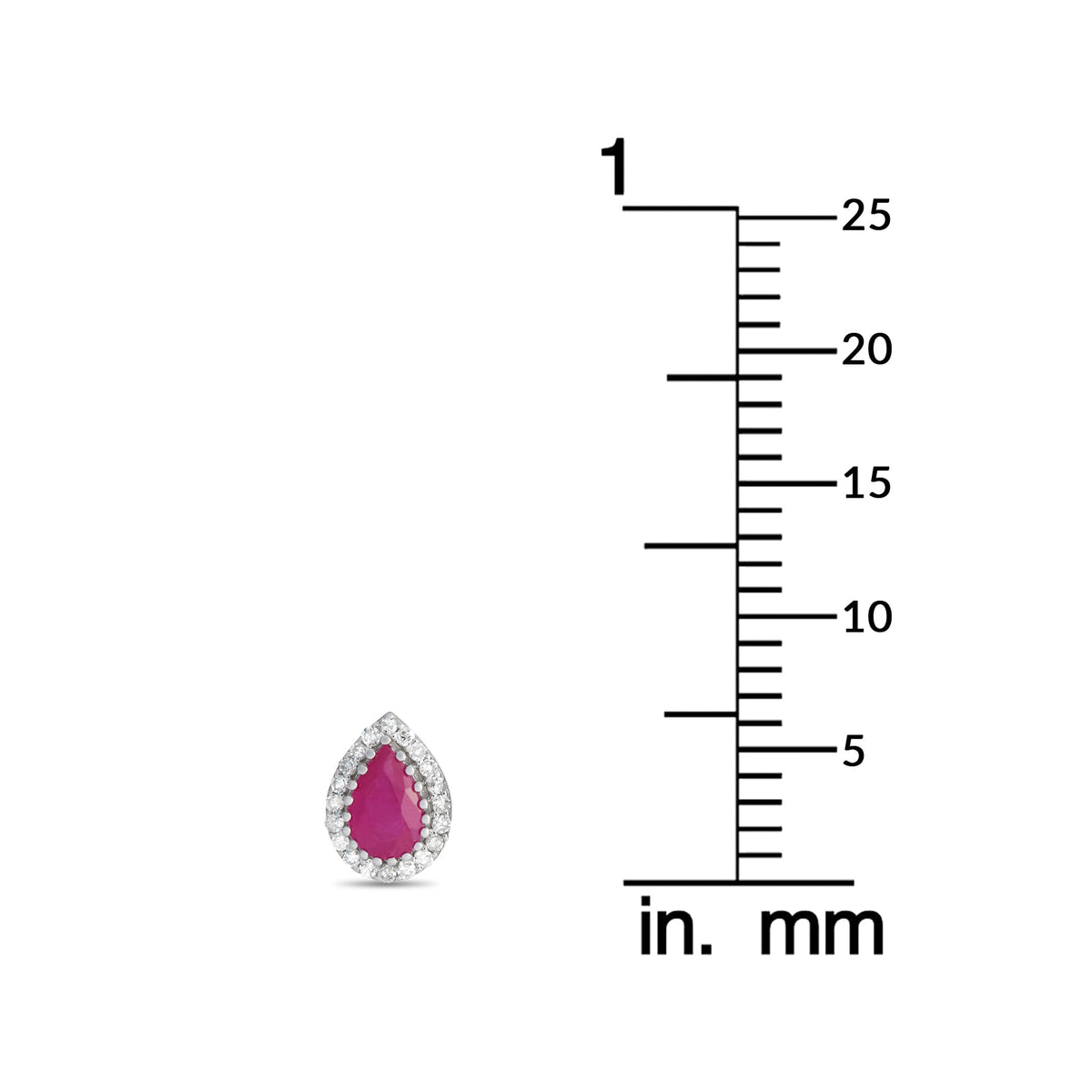 LB Exclusive 14K White Gold 0.17ct Diamond and Ruby Pear Halo Stud Earrings ER4-15272WRU