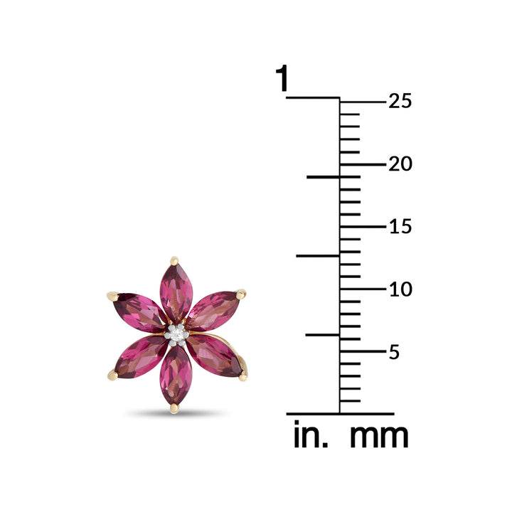 LB Exclusive 14K Yellow Gold 0.01ct Diamond and Rhodolite Flower Earrings ER4-15657YRHOD