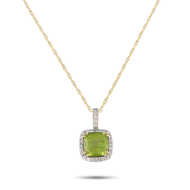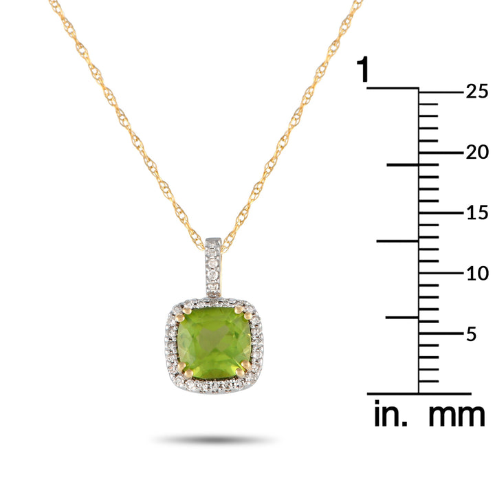 LB Exclusive 14K Yellow Gold 0.09ct Diamond and Peridot Pendant Necklace PD4-16269YPE