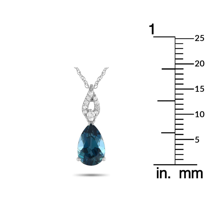 LB Exclusive 14K White Gold 0.06ct Diamond and Pear-Cut Blue Topaz Necklace PD4-16184WBT